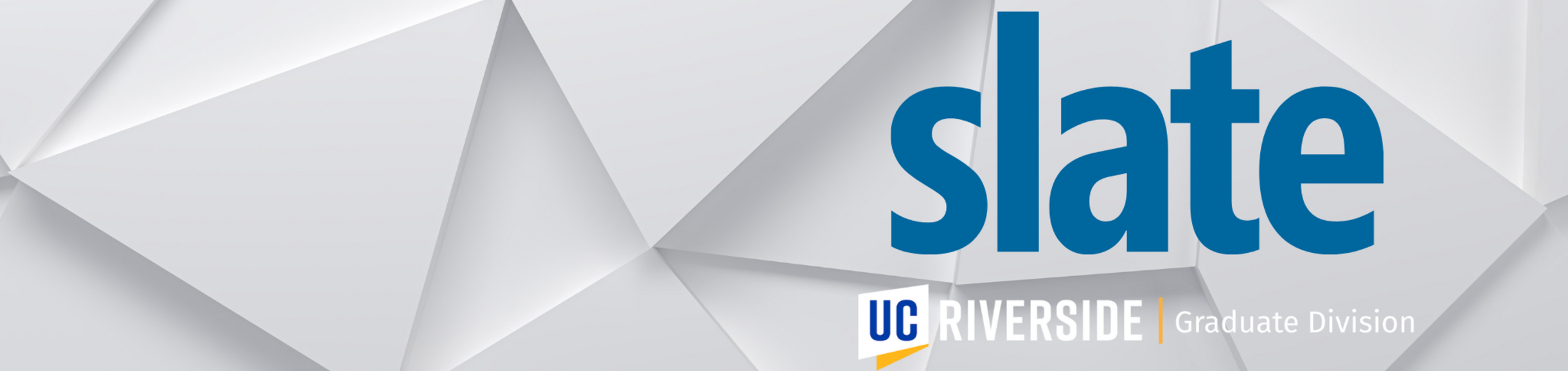 Slate is a comprehensive admissions system that comprises CRM (Customer Relationship Management) and an Application platform. It is currently being used by over 750 institutions including many of the UC's Graduate Divisions. It is designed and developed exclusively for higher education admissions and recruitment. Currently, UCR's Graduate Division is using the CRM portion of Slate.