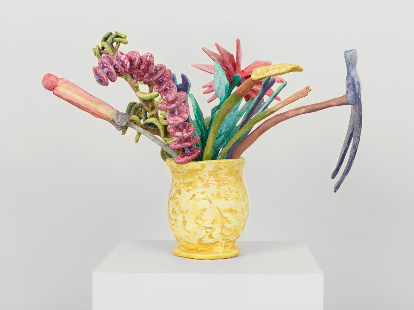 Plaster, cardboard, aluminum rod, Magic Sculpt and tempera, 13-1/2 x 19 x 18 inches