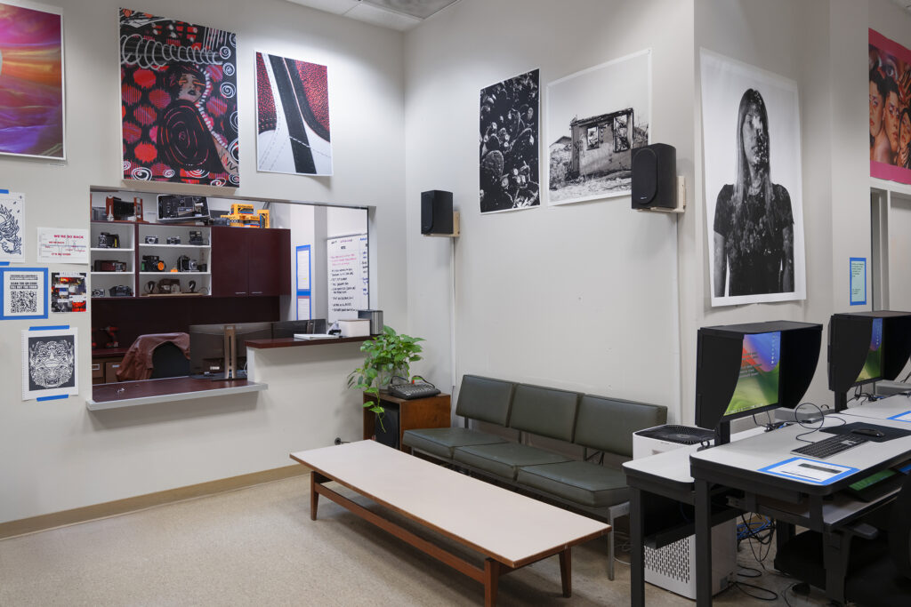 The techs in Photo, Video, and Digital Media are always here to help you with your work. Our goal is to allow students access to all equipment available.
