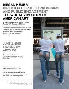 Megan develops and oversees all adult public programs, including artists’ talks, lectures, panel discussions, workshops, and courses. Prior to joining the Whitney in 2014, she was a Jane and Morgan Whitney Fellow in the Modern and Contemporary Art Department at The Metropolitan Museum of Art, and she previously worked in the curatorial and education departments at the New Museum. She is completing a PhD in art and archaeology at Princeton University.