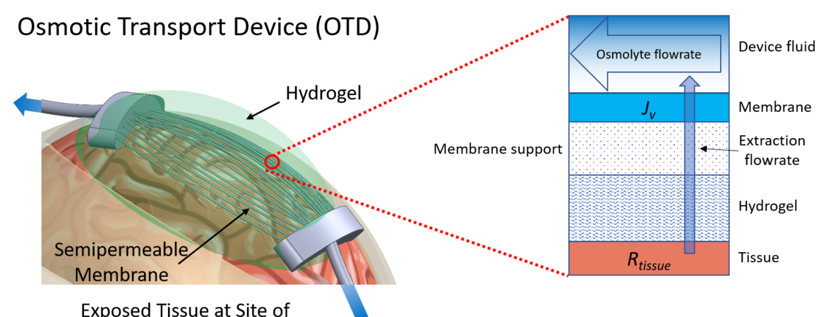Professor Rodgers, Professor Devin Binder (SOM) and colleagues at Walter Reed Army Institute of Research (WRAIR) received a grant from MTEC to develop a fieldable direct osmotherapy device for the point-of-injury reduction of cerebral edema following penetrating traumatic brain injury. This work will use the patented technology developed by Rodgers(US patent 10,420,918 B2) to reduce intracranial pressure and edema in animal models after simulated ballistic wounds. The successful outcome could be immediate treatment for soldiers in the field.