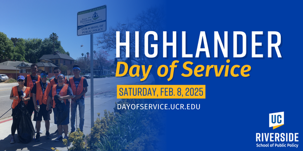 The UCR School of Public Policy is hosting a beautification and trash pickup project for Highlander Day of Service.