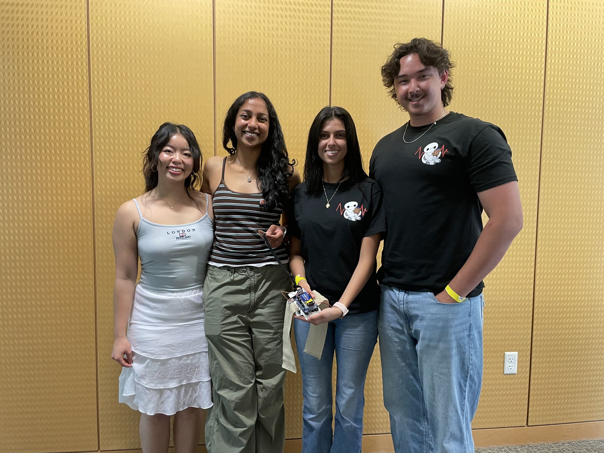 The team including our lab members Phiphi and Yasmin developed the Biomechanical Alignment eXosystem, a wearable device designed to help improve poor posture via auditorial and physical reminders. They successfully won fourth place among over 40 teams at the school's only make-a-thon competition!