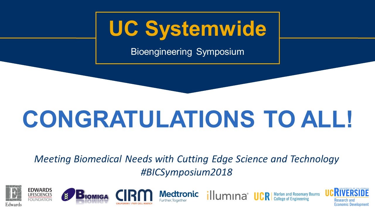 Highlights (Part 2/2) of the 19th Annual UC Systemwide Bioengineering Symposium. The symposium was held at the Riverside Convention Center in downtown Riverside, CA. The program was hosted by UC Riverside.