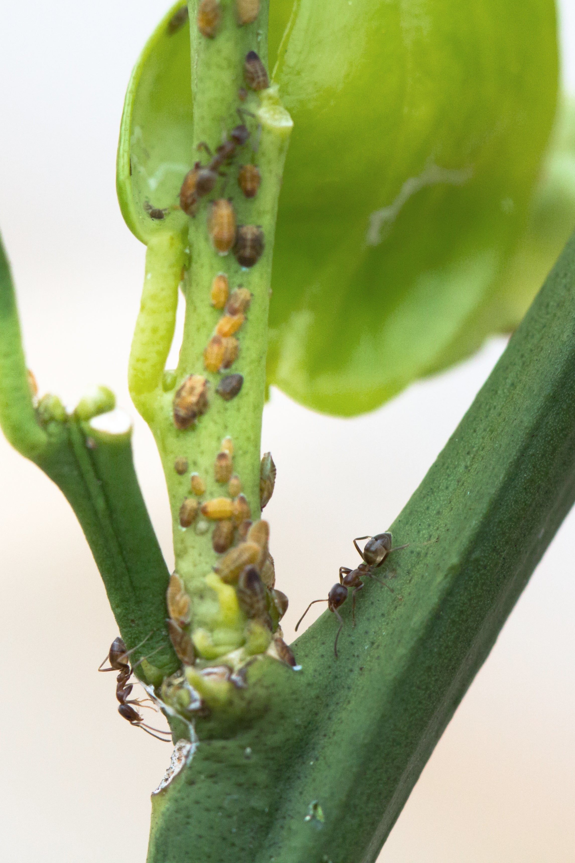 A growing body of evidence indicates that carbohydrates derived from plants and insects, particularly monosaccharides such as sucrose and glucose, serve as the main macronutrients that sustain populations of Argentine ants in invaded environments (Shik and Silverman 2013). In agricultural ecosystems, sugar is readily accessible in the form of honeydew, a waste exudate produced by sap-feeding hemipteran pests such as mealybugs, soft scales, aphids, whiteflies, and psyllids (Smith, 1936; Markin 1970; Vega and Rust 2001; McCalla et al. 2023). Argentine ant is specialized in efficient gathering and transportation of liquid sugar, like honeydew. In citrus orchards, Argentine ant is a numerically and behaviorally dominant ant species and readily establishes mutualistic relationships with colonies of honeydew-producing hemipterans, which ants protect from natural enemies in return for food (Bartlett 1961; Tena et al. 2013; McCalla et al. 2023).