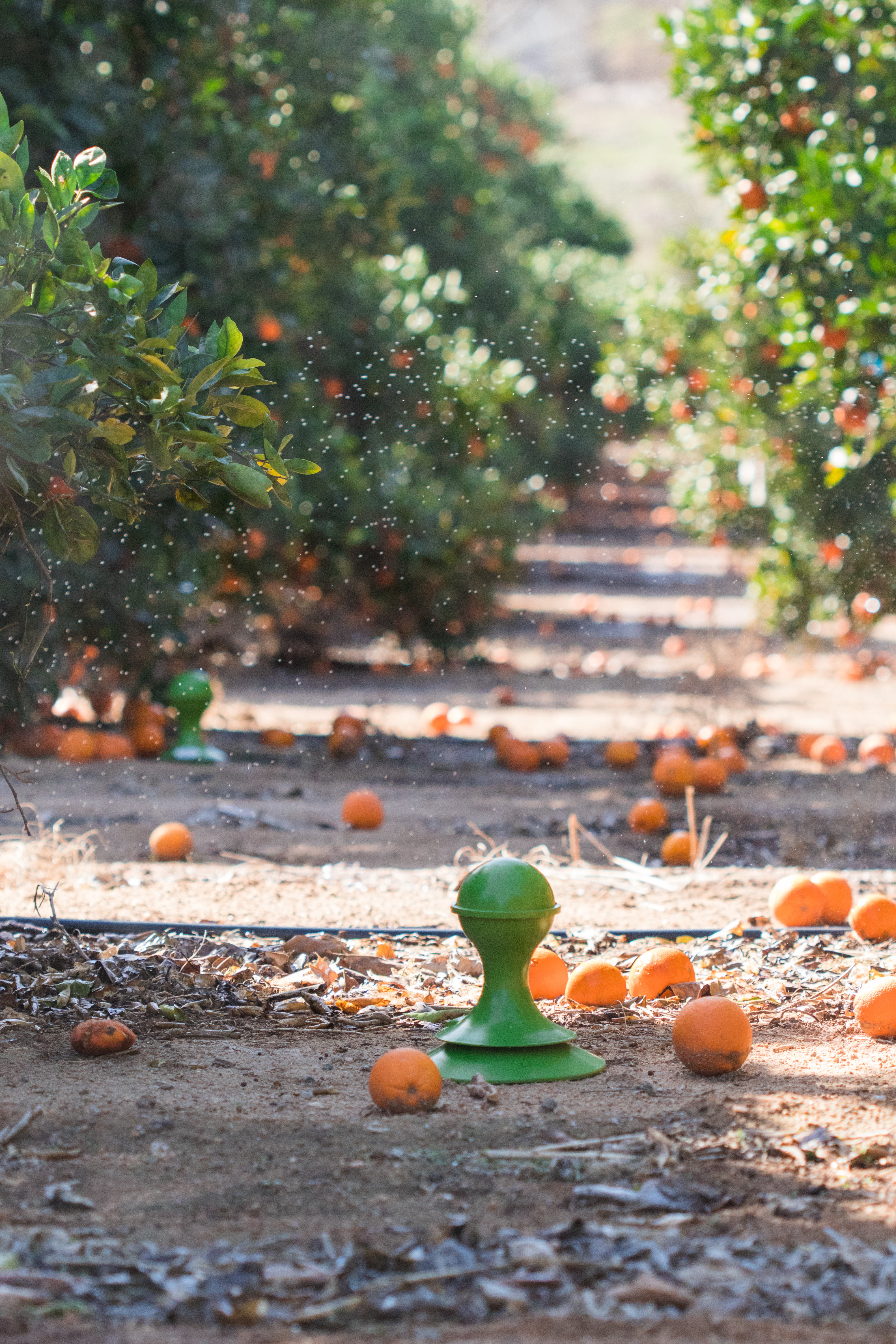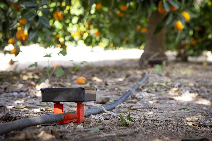 irrigation line in a commercial citrus orchard is being