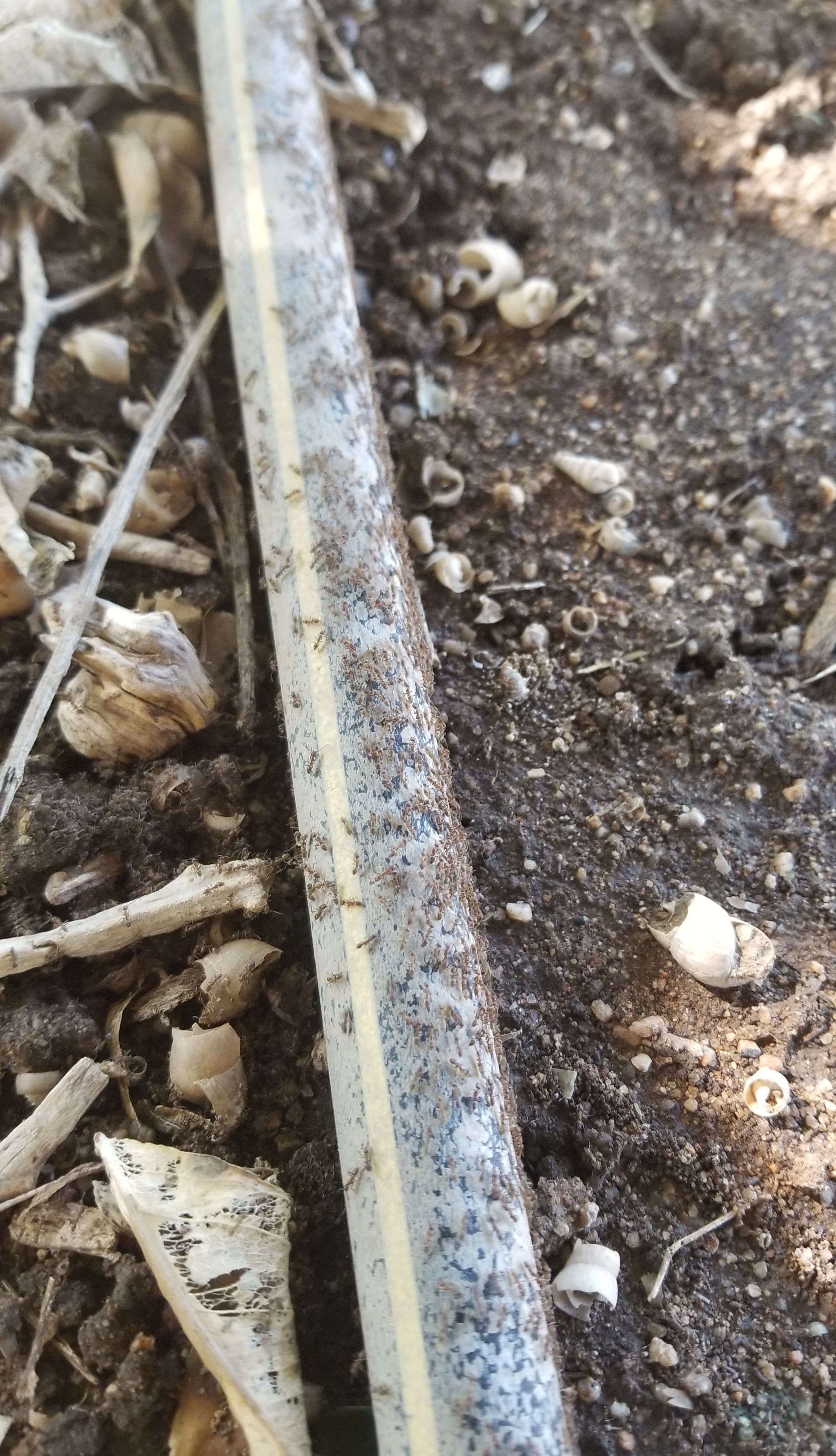 counts ant moving on the irrigation pipe when they break