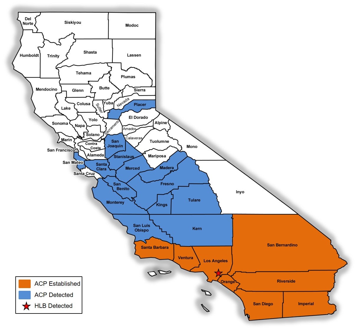 Figure 2. Known distribution of ACP in California as of January 2017. |
