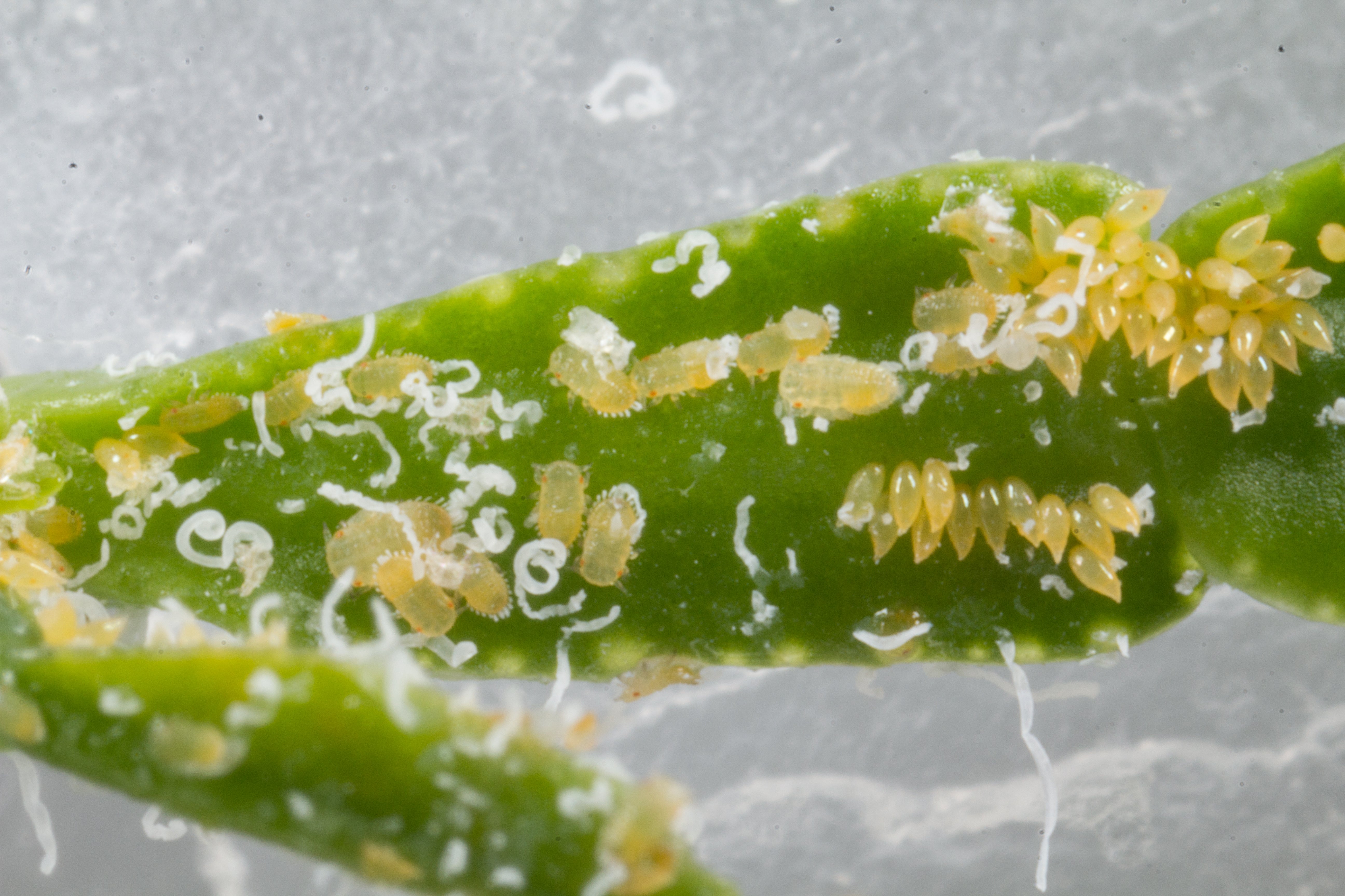 - Rohrig, E., Shirk, P.D., Hall, D.G. and Stansly, P.A., 2011. Larval development of Diaphorencyrtus aligarhensis(Hymenoptera: Encyrtidae), an endoparasitoid of Diaphorina citri (Hemiptera: Psyllidae). Annals of the Entomological Society of America. 104: 50-58.