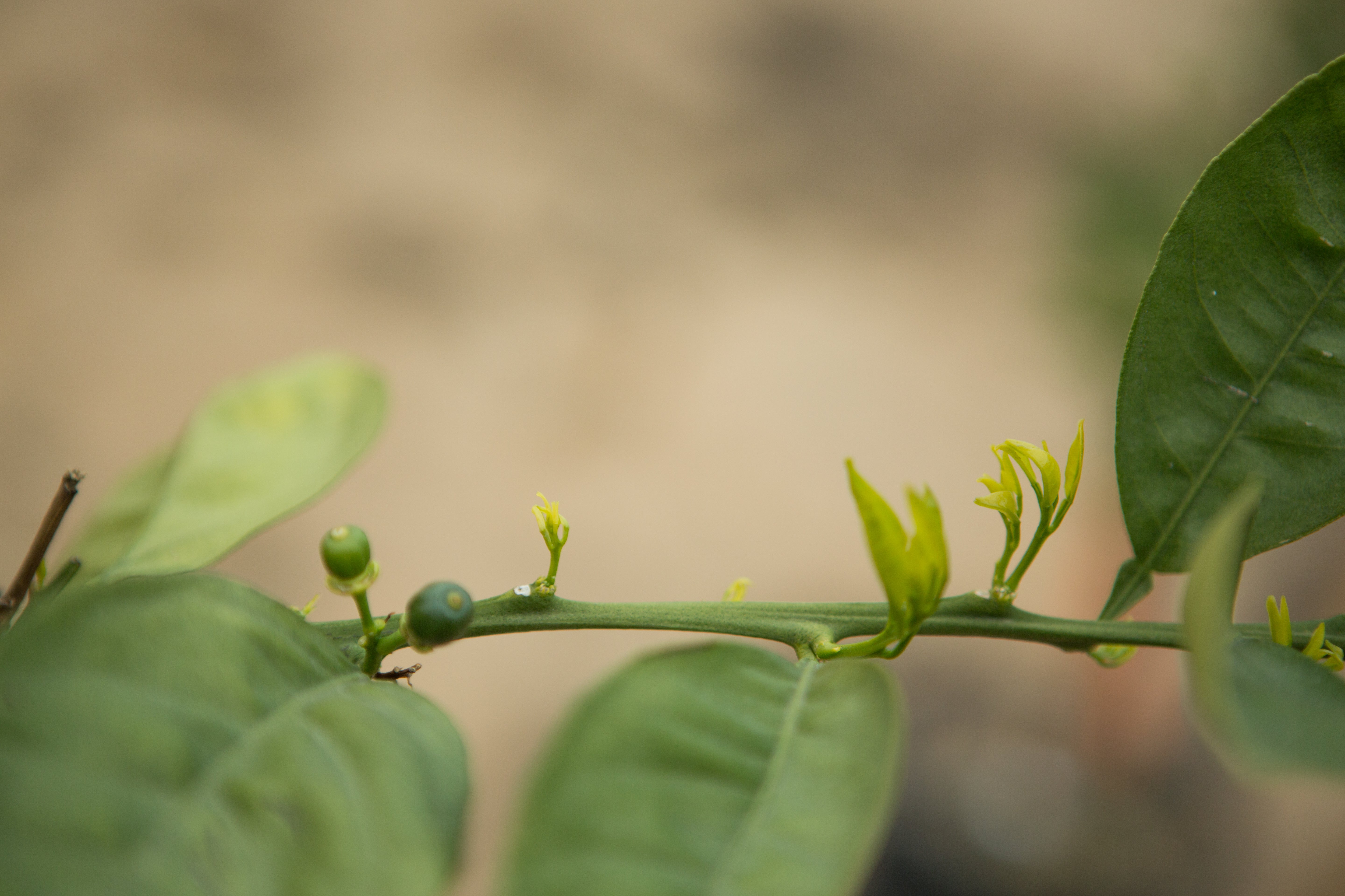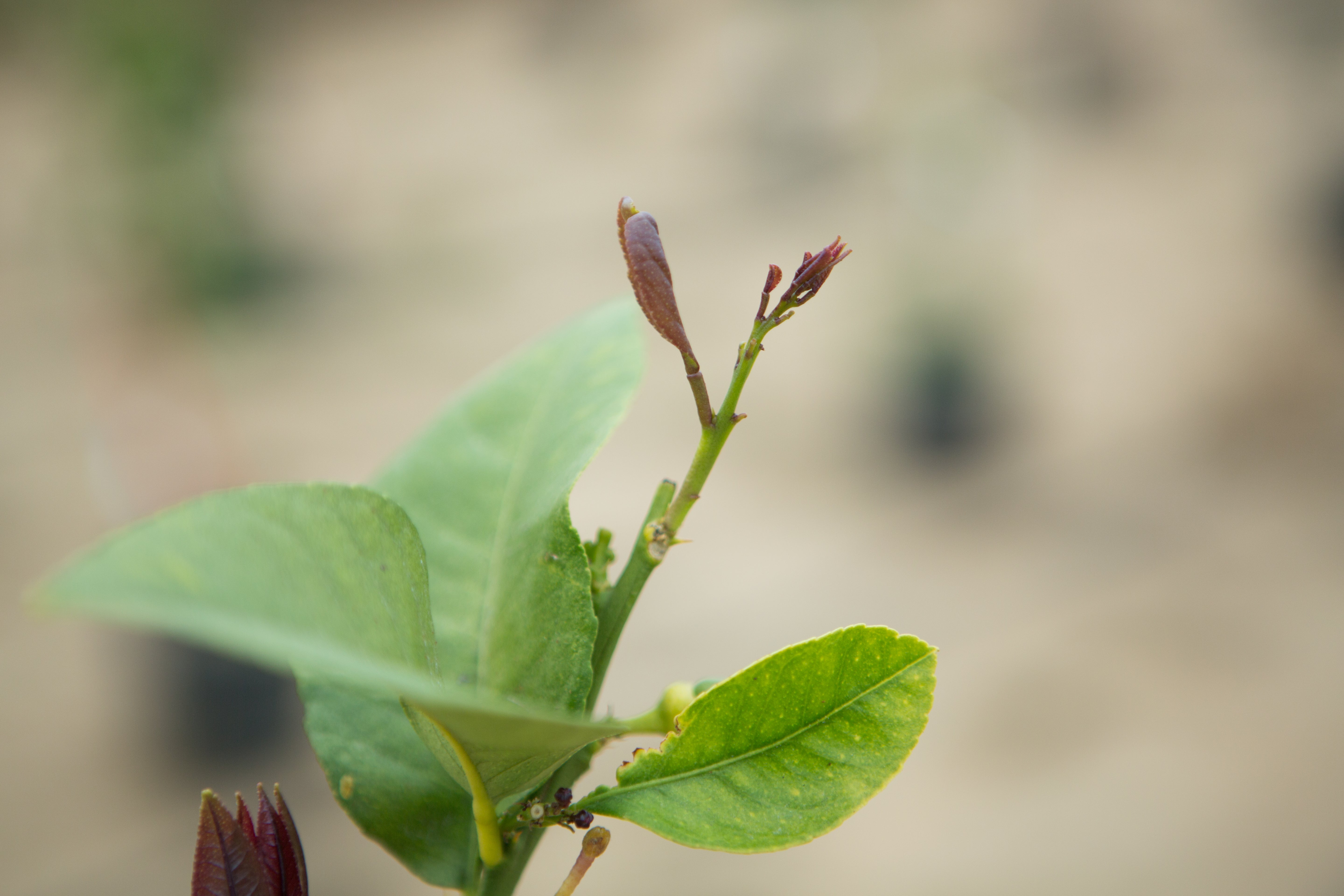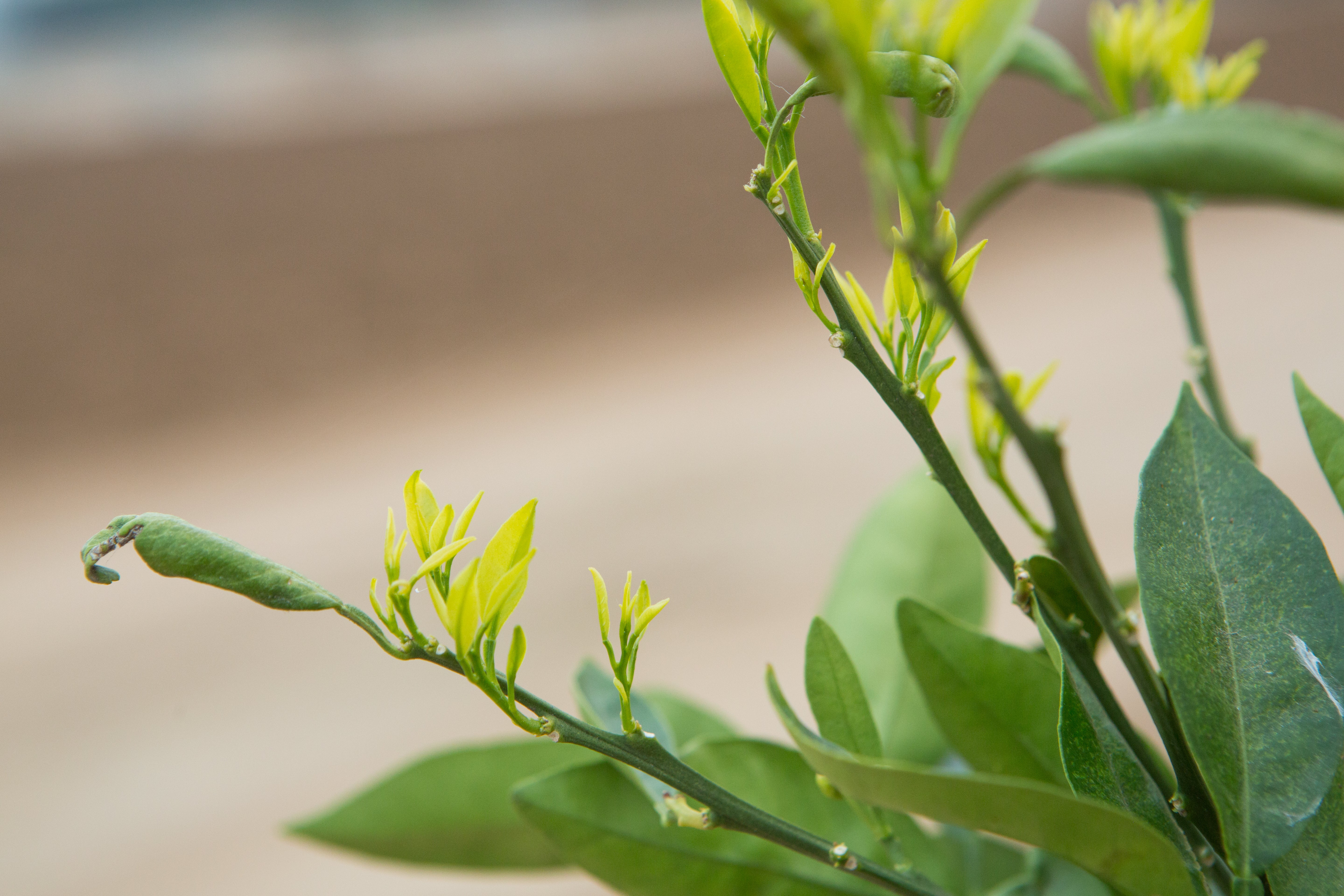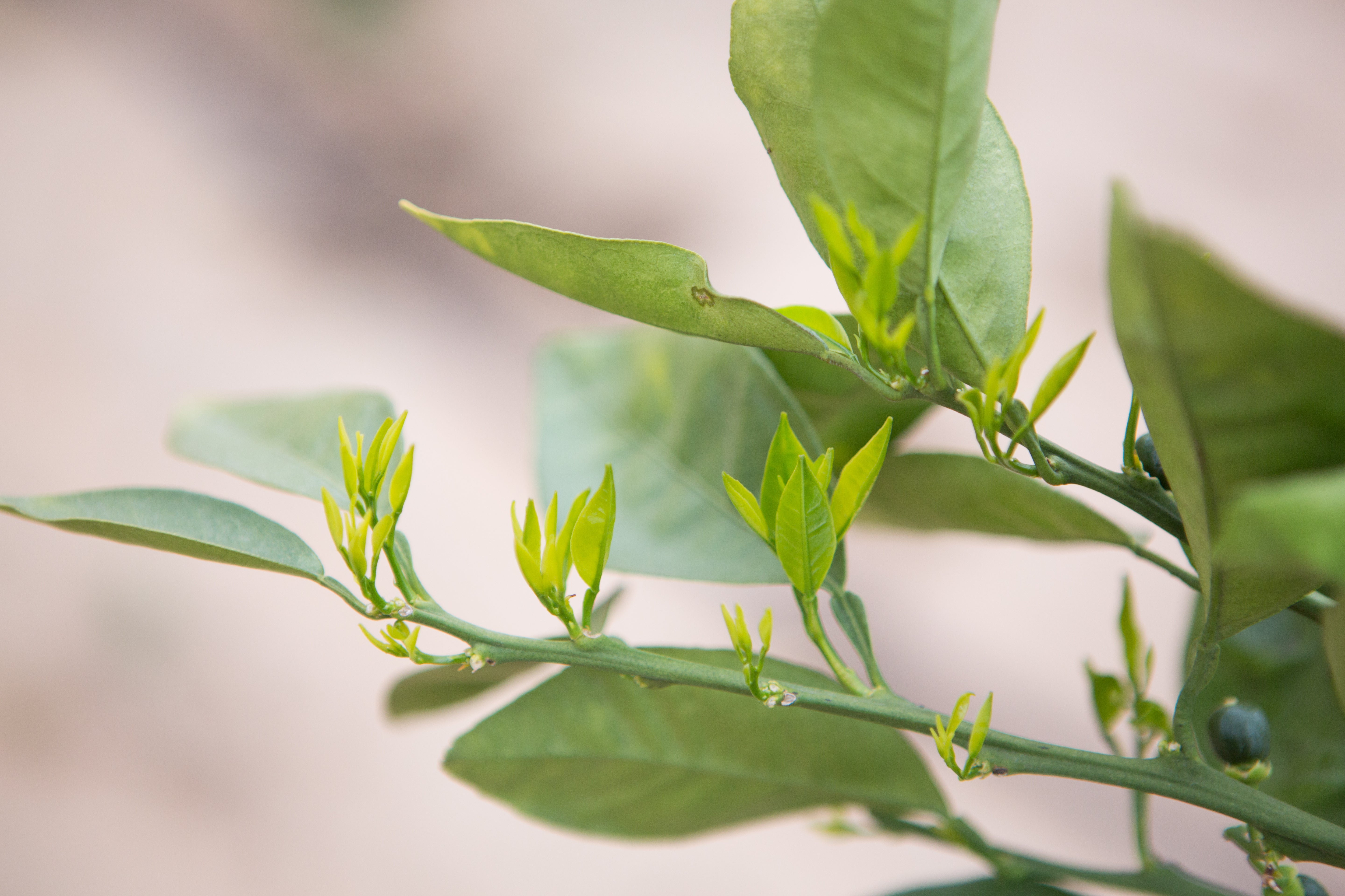 Figure 4. Citrus ‘feather flush’ leaves: orange (a,b,d), lemon (c). (Photos: Mike Lewis, Center of Invasive Species Research, UC Riverside). |