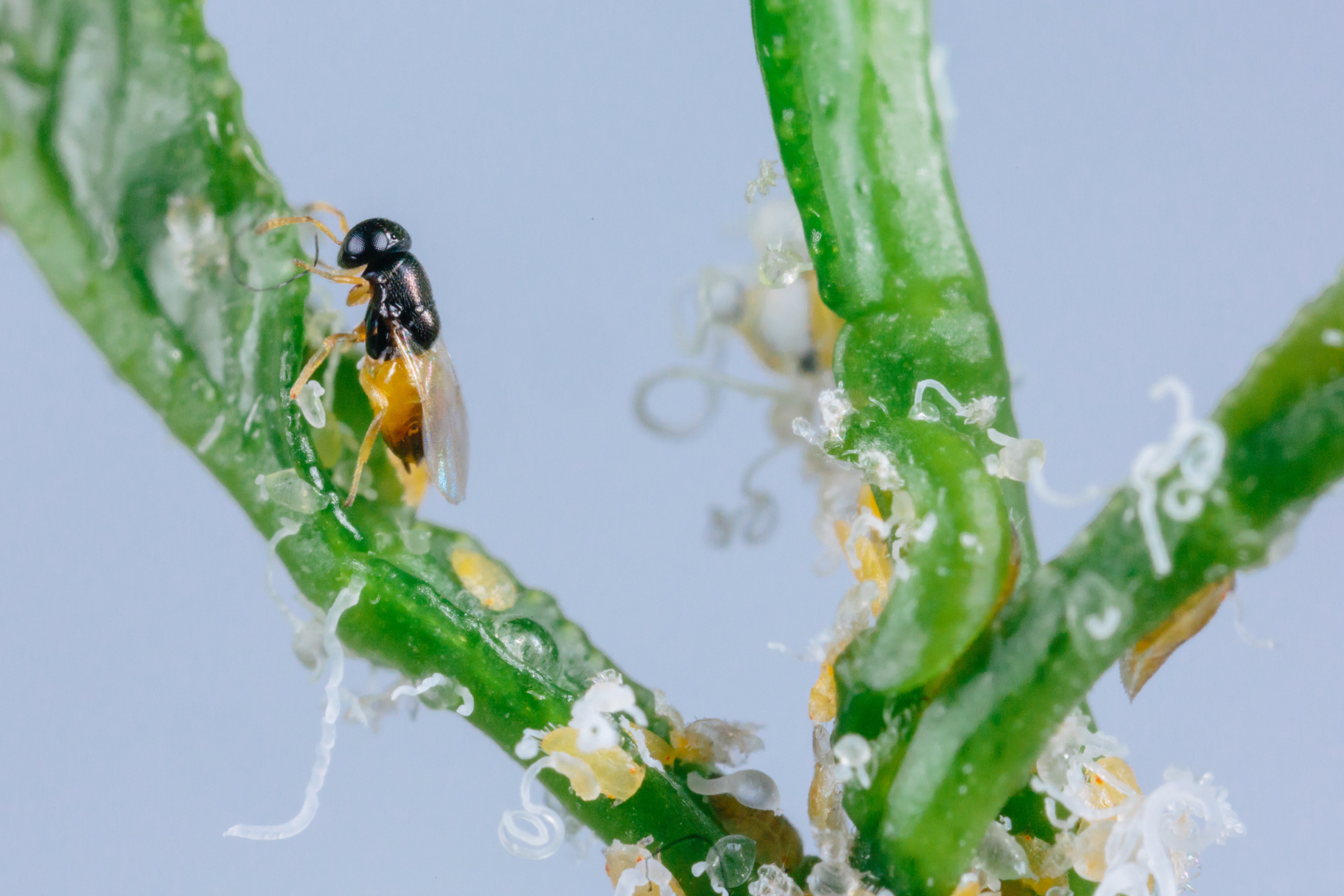 The development of a classical biological control program in California required extensive foreign exploration in Punjab Pakistan, rigorous host range and host specificity testing (i.e., safety testing) to ascertain the risk natural enemies posed to non-target species (e.g., native California psyllids), mass production of natural enemies approved for release, and the subsequent widespread release of the ACP’s two primary parasitoids, Tamarixia radiata and Diaphorencyrtus aligarhensis in California (Hoddle 2012). It is important to note here that parasitoids differ from parasites in that a parasitoid kills its host by feeding on it whereas a parasite extracts nutrients from its host without killing it.