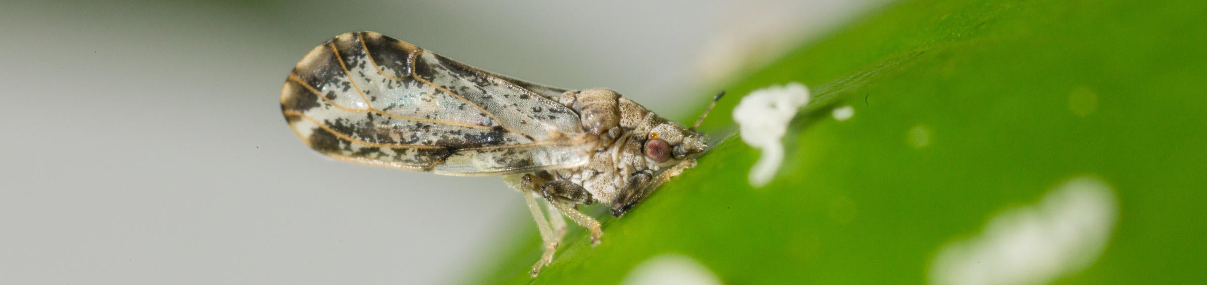 | Figure 1. Adult Asian citrus psyllid. (Photo: Mike Lewis, Center of Invasive Species Research, UC Riverside). |