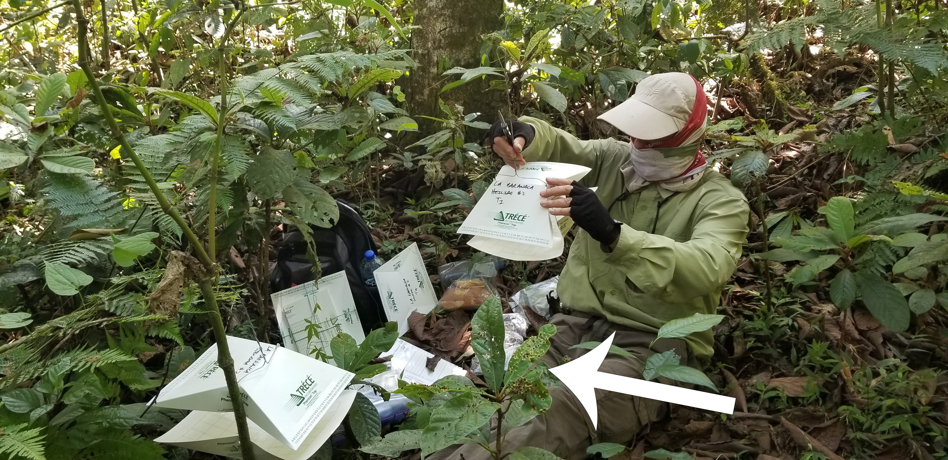 Phase 2: Field Evaluations of the Heilipus Aggregation Pheromone in Wilderness Areas: La Baranca, a wild forested area with chinini avocados, Persea schiedeana, was selected for experiments (Fig. 12). Access to “La Barranca” was from one of the commercial Hass orchards in Huatusco used for pheromone evaluations. This wilderness site was a 90 min walk down a very steep mountainside trail to a flattish area above a year round flowing river. The return hike up the orchard took 2.5 hr. Dropped fruit at the chinini site clearly exhibited high levels of H. lauri activity (Fig. 13).