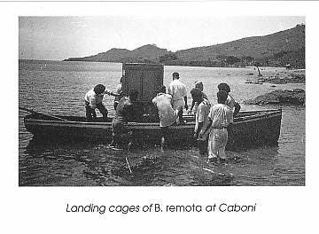 | Figure 7. Cages containing Besa remota for release at Caboni. |