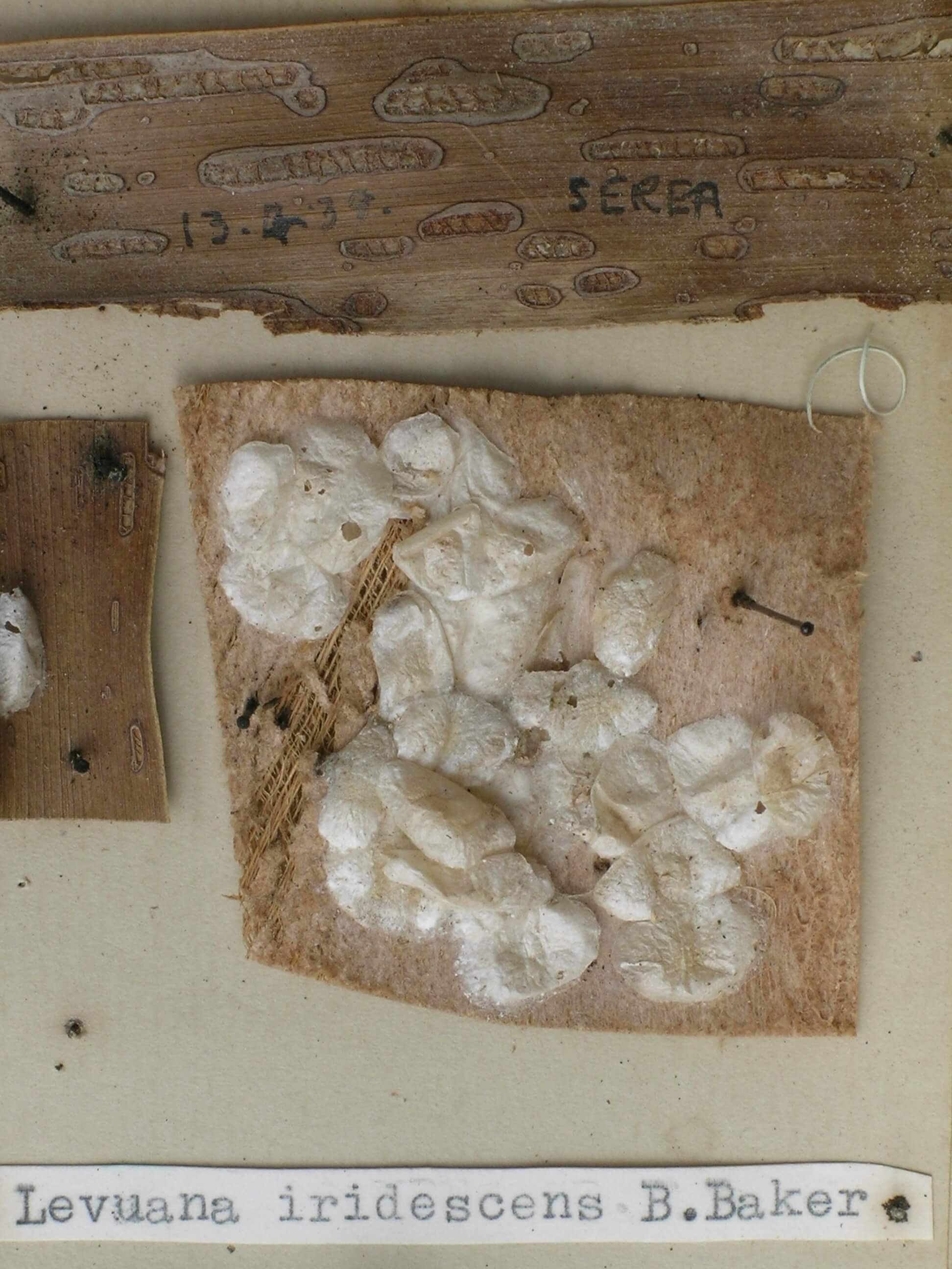 Host plant eradication. In addition to coconut, L. iridescens larvae feed on several other palm species, including Actinophloeus macarthuri, Areca catechu (betel nut), Elueis guineensis, Guilelma speciosa, Livistona chinensis and L. speciosa, Oreodoxa regia and O. oleracea(royal palms), Sabal palmetto, Sagus vitiensis (native sago palm), and Veitchia joannis (niu sawa). During severe outbreaks, high densities of L. iridescens would "spill over" onto less preferred hosts and eggs and feeding larvae would be found on Artocarpus incisa (breadfruit), bananas, reeds, sugar cane, and unidentified orchids (Tothill et al. 1930; Simmonds 1925). "Drastic steps" such as the removal of food sources "to starve out" L. iridescens were considered necessary in combination with burning and arsenical sprays to eradicate L. iridescens on recently invaded islands that lay offshore from Viti Levu (Simmonds 1922). A similar project proposed for Viti Levu would have eradicated all preferred hosts, in particular, coconuts and royal palms. The enormity of the project, the cost, and the uncertainty of eliminating every host plant led to the abandonment of this strategy at an early stage of planning (Simmonds 1922; 1924).