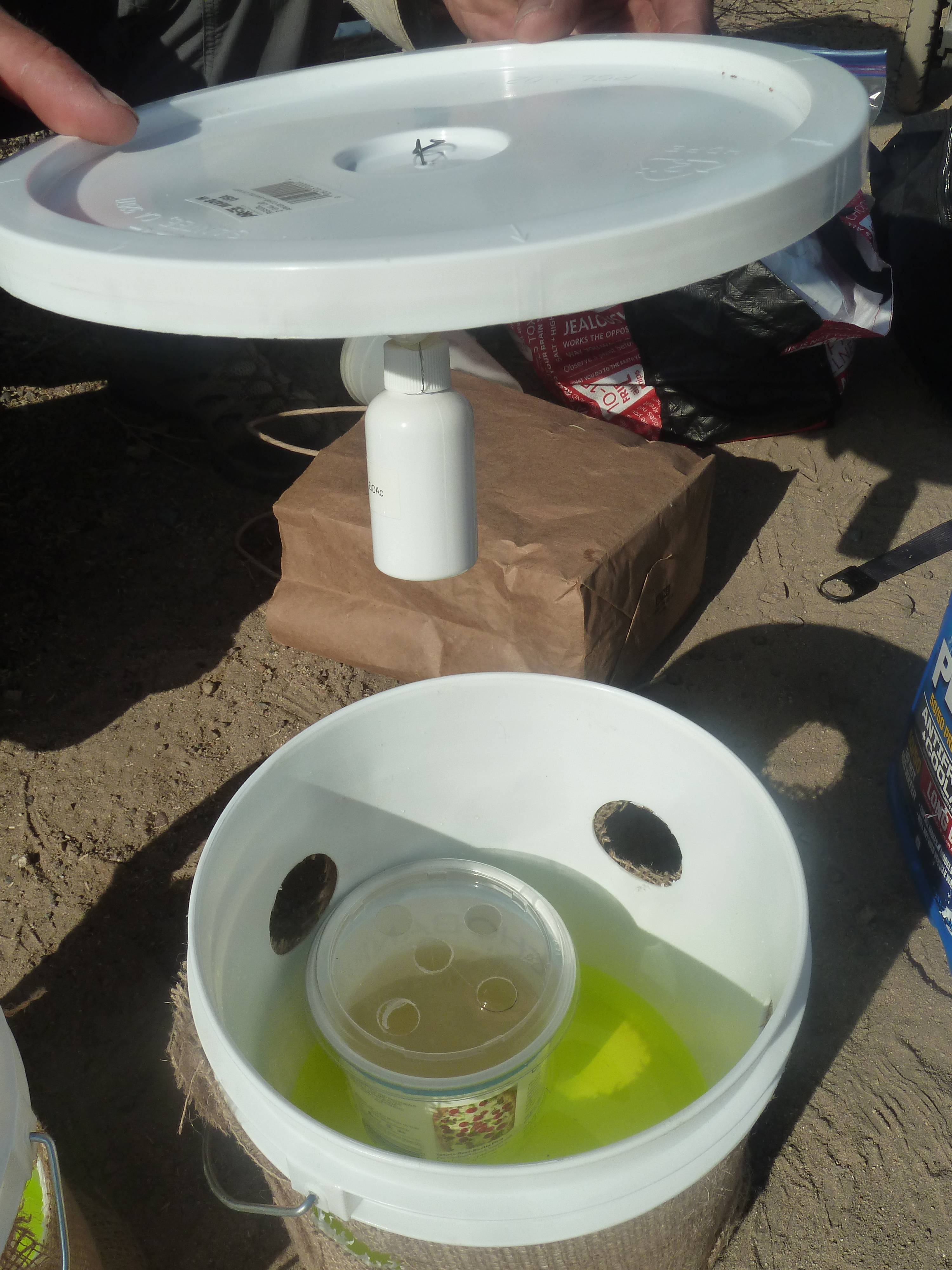 There are two basic types of weevil trap, the bucket trap and the pyramid shaped Picusan trap. Bucket traps can be suspended above the ground or partially buried. Picusan traps are designed to be placed on the ground but they can be suspended.