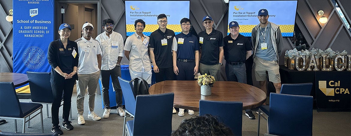 Five UCR School of Business students received scholarships from CalCPA, the largest state CPA society in the nation, on May 17 at the society’s Installation & Scholarship ceremony. The day’s events also included a spirited game tournament at Topgolf in Ontario, California, where the UCR Business team proudly won the CalCPA Inland Empire Chapter Battle of the Firms trophy. The combination of academic recognition and a fun, team-based competition made the day especially memorable for students, faculty, and staff who represented the university.
