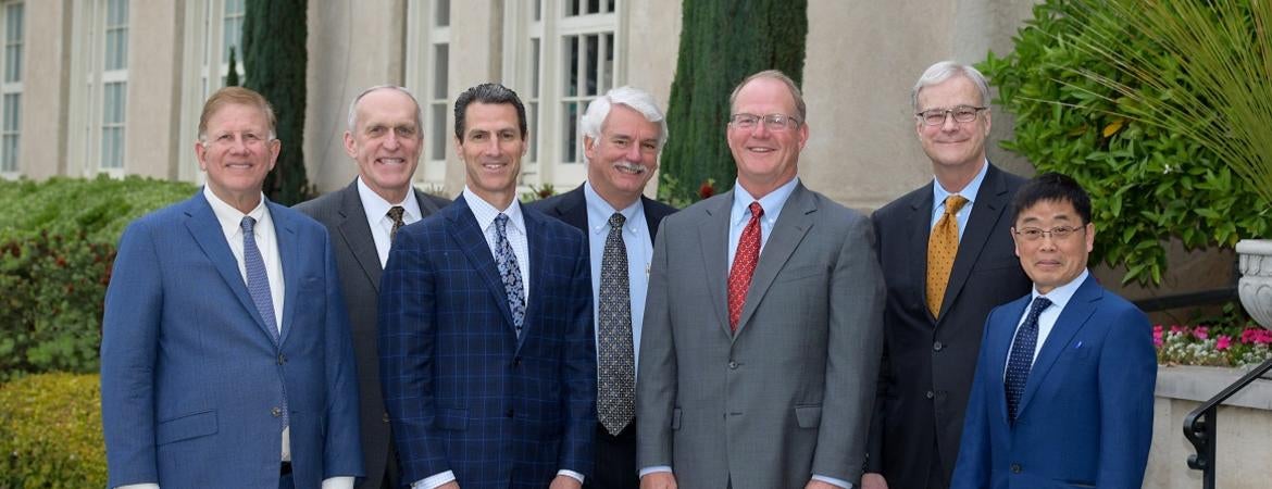 UCR School of Business held a ceremony on April 11th, in honor of the 2018 -19 outgoing Executive Fellows Matt D. Lyons ’87, Byron Pollitt ’73, and William E. Thomas, and welcomed the incoming Executive Fellows Darin Anderson ’89, MBA ’91, and Dr. David Hadley ’71, M.S. ’73 for the 2019-2020 academic year..