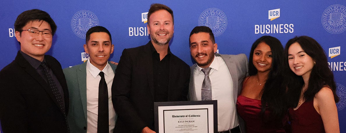 Professor Kyle Ingram was recently honored with the 2022 Innovative Teaching Award from UC Riverside and the Shulman Endowed Excellence in Teaching Award from the UCR School of Business.