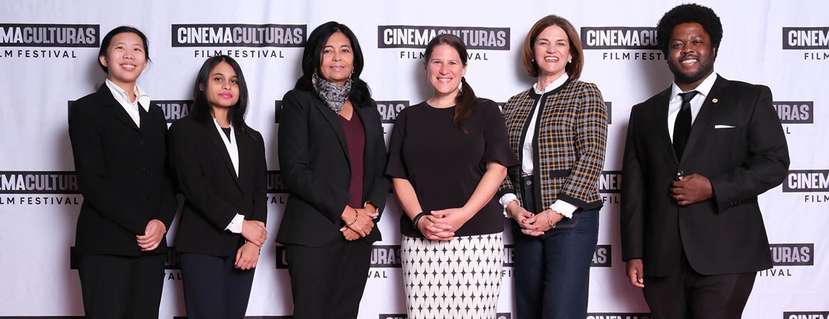 Header image (from left to right): Mallika Tewari, Carol Kao ’21, ’23 MBA, Cinema Culturas general director and founder Cony Martinez, Ph.D., Riverside Councilmember Erin Edwards, Riverside Mayor Patricia Lock Dawson, and Pierre CeArc ’20, ’23 MBA