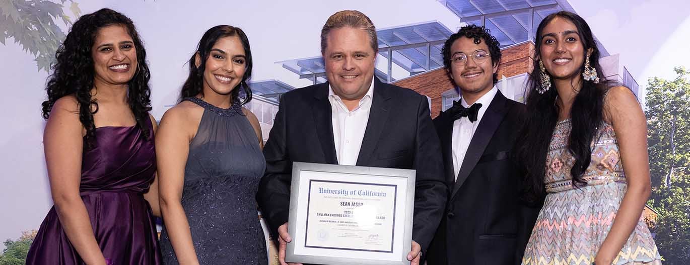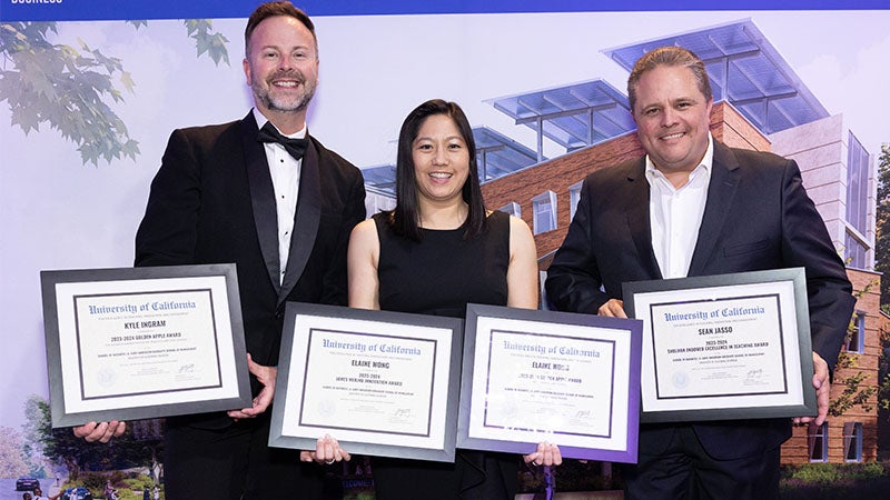 The evening’s proceedings also recognized the recipients of teaching awards from the UCR Academy of Distinguished Teaching: Associate Professor of Marketing Ashish Sood received the Innovative Teaching Award, and Assistant Professor of Teaching Jonathan Lim received the Junior Faculty Excellence in Teaching Award.