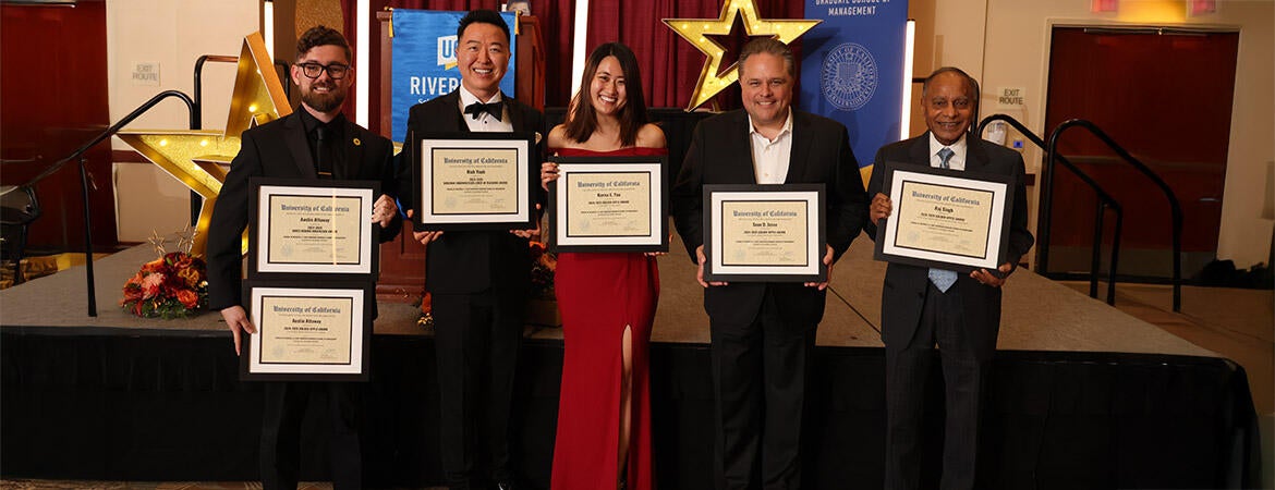 At the May 23 UCR School of Business Spring Banquet, the annual student-voted awards were presented to five faculty members by student leaders.