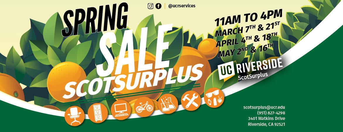 We offer in person and online sales. Either way, ScotSurplus offers the best bargains on campus.