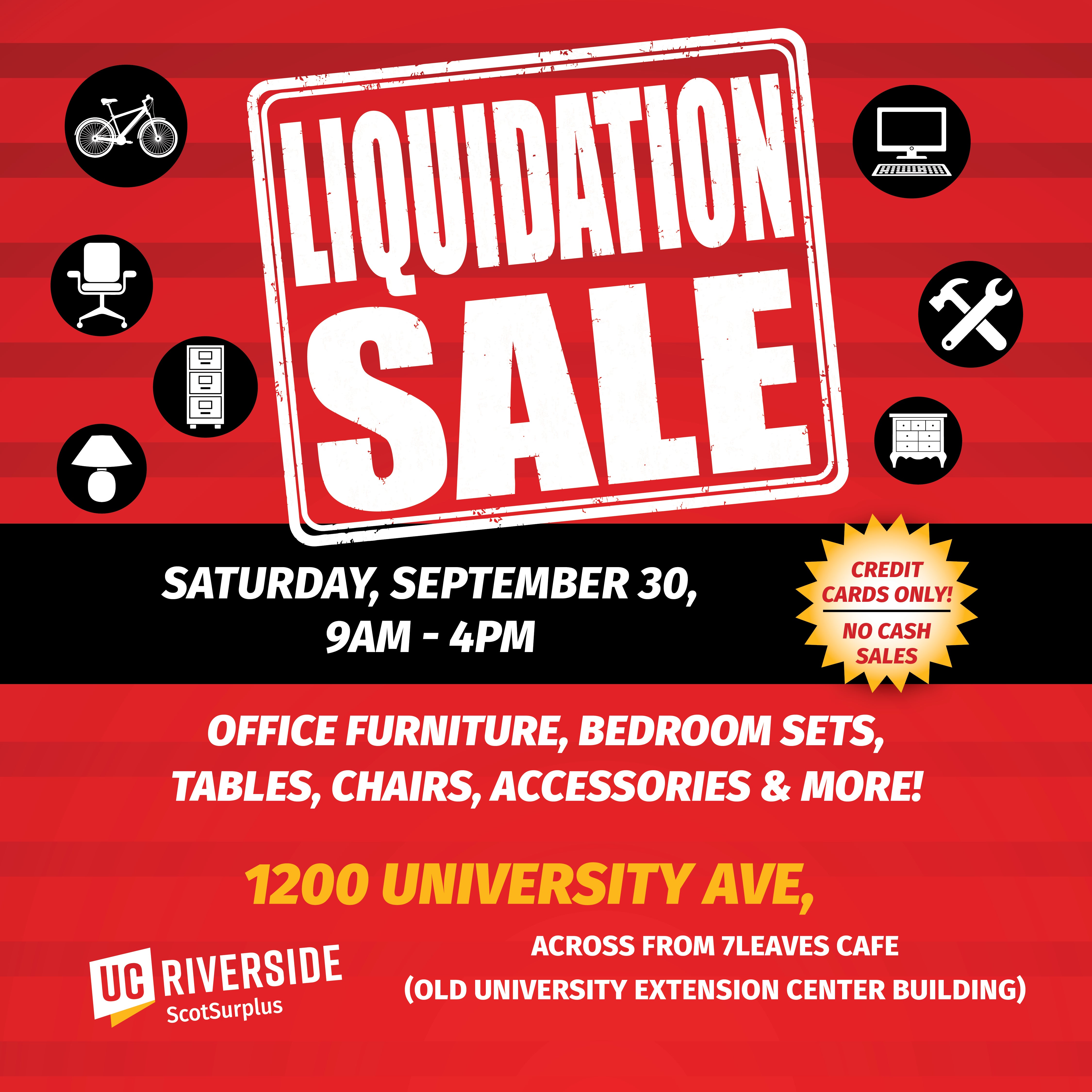 ScotSurplus has announced a Liquidation Sale at the old University Extension Center Building at 1200 University Avenue on Saturday, September 30 from 9:00 am to 4:00 pm.