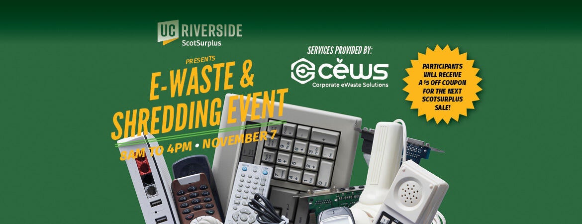 The items can belong to an individual or UCR department. The services are being provided by CEWS Corporate eWaste Solutions.