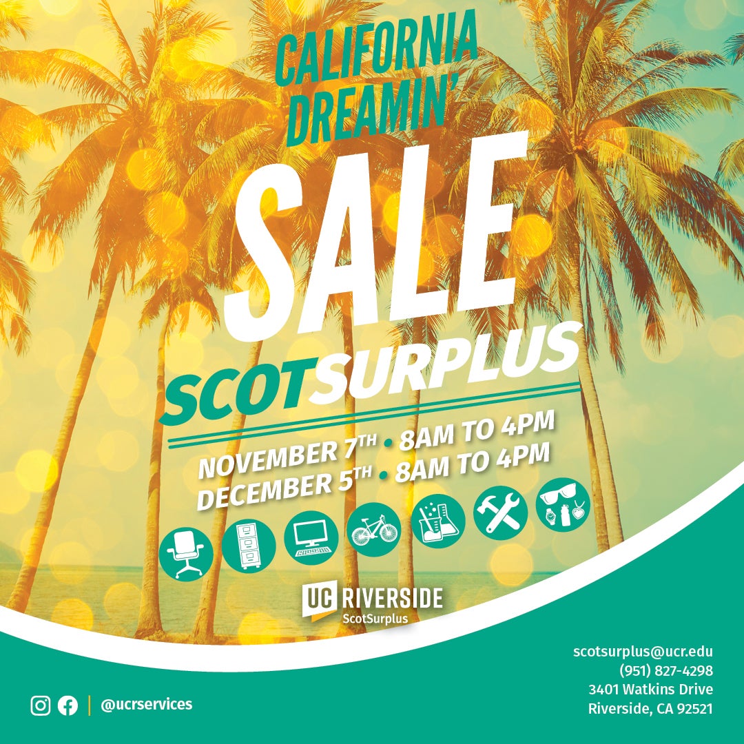 We offer in person and online sales. Either way, ScotSurplus offers the best bargains on campus.