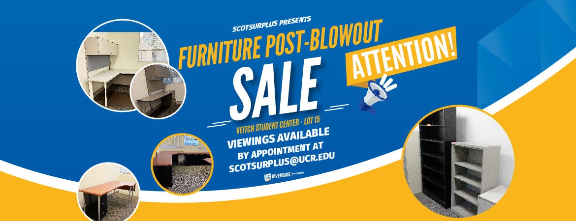 With the opening of the new UCR Student Health and Counseling Center earlier this academic year, ScotSurplus is excited to continue offering a Furniture Post-Blowout sale featuring items from the former Student Health Services Veitch Student Center.