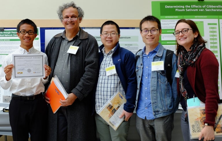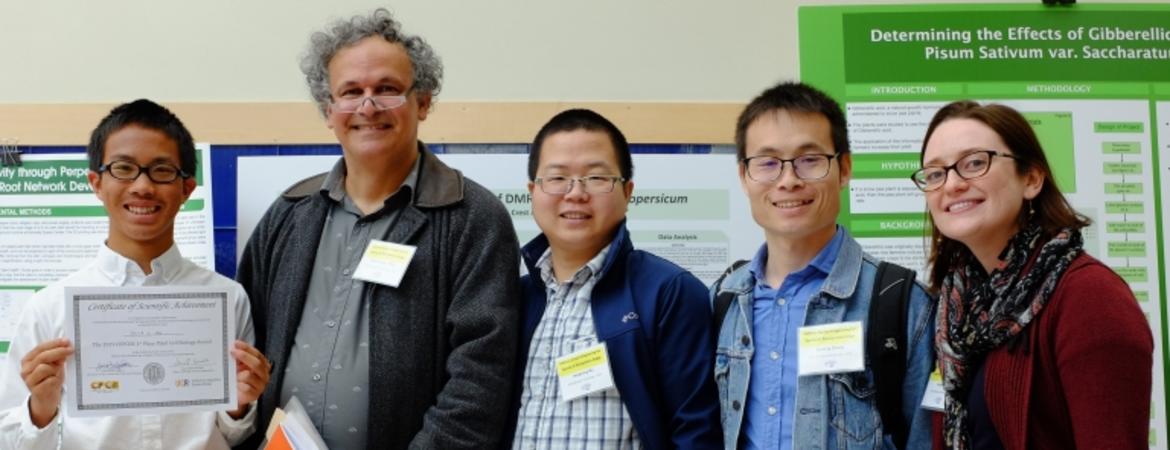 CEPCEB awarded two Senior Division prizes at the California State Science and Engineering Fair Awards on Tuesday, April 30, 2019. These awards recognize scientific achievement in the fields of cell and molecular biology, genomics, bioinformatics or technology development that will impact our understanding of plant cell biology. Special congratulations to David He of San Diego, who received the $500 First Place award for his project titled “Effect of Genetic Modification of DMR6 in Solanum lycopersicum” . The $100 Second Place award went to Daniel Feng of Irvine for his project titled “Discovering Antibacterial Molecules in a Previously Uninvestigated Native American Medicinal Herb”.