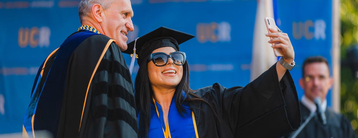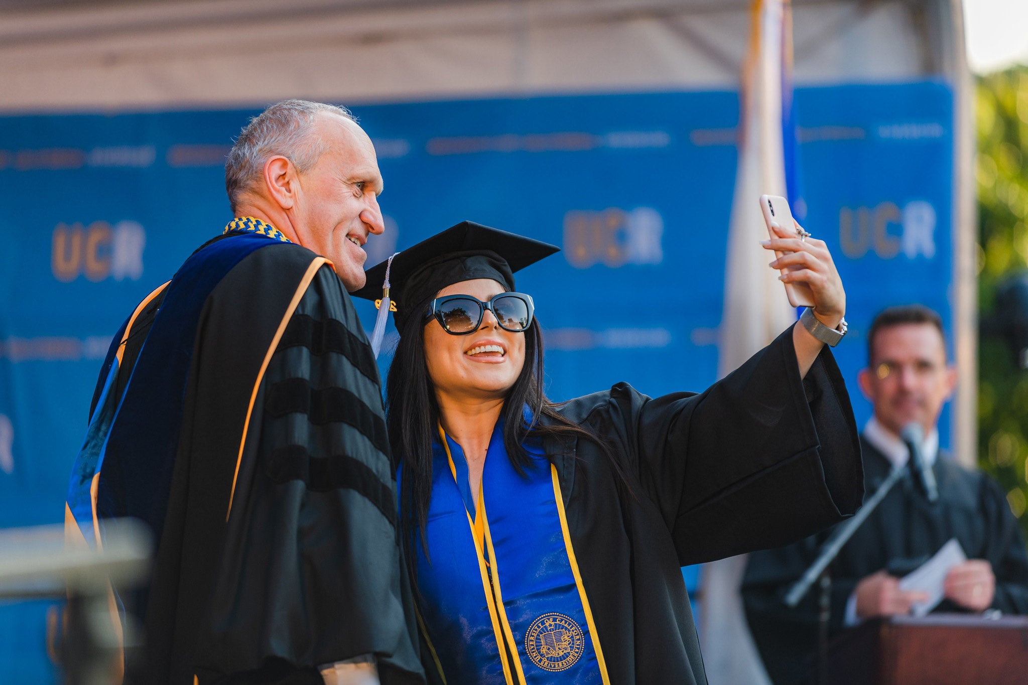 “Every one of us has come to be where we are today on the shoulders of all of those who have given their love, sacrifice, generosity, and kindness,” Peña said. “I look forward to the day that you return as an alumnus, to share how your time at UCR paved the way for your success. With your degree, you are part of this chain of those who will go on to do great things, and continue the UCR Highlander spirit to be successful at whatever you choose in your careers.”
