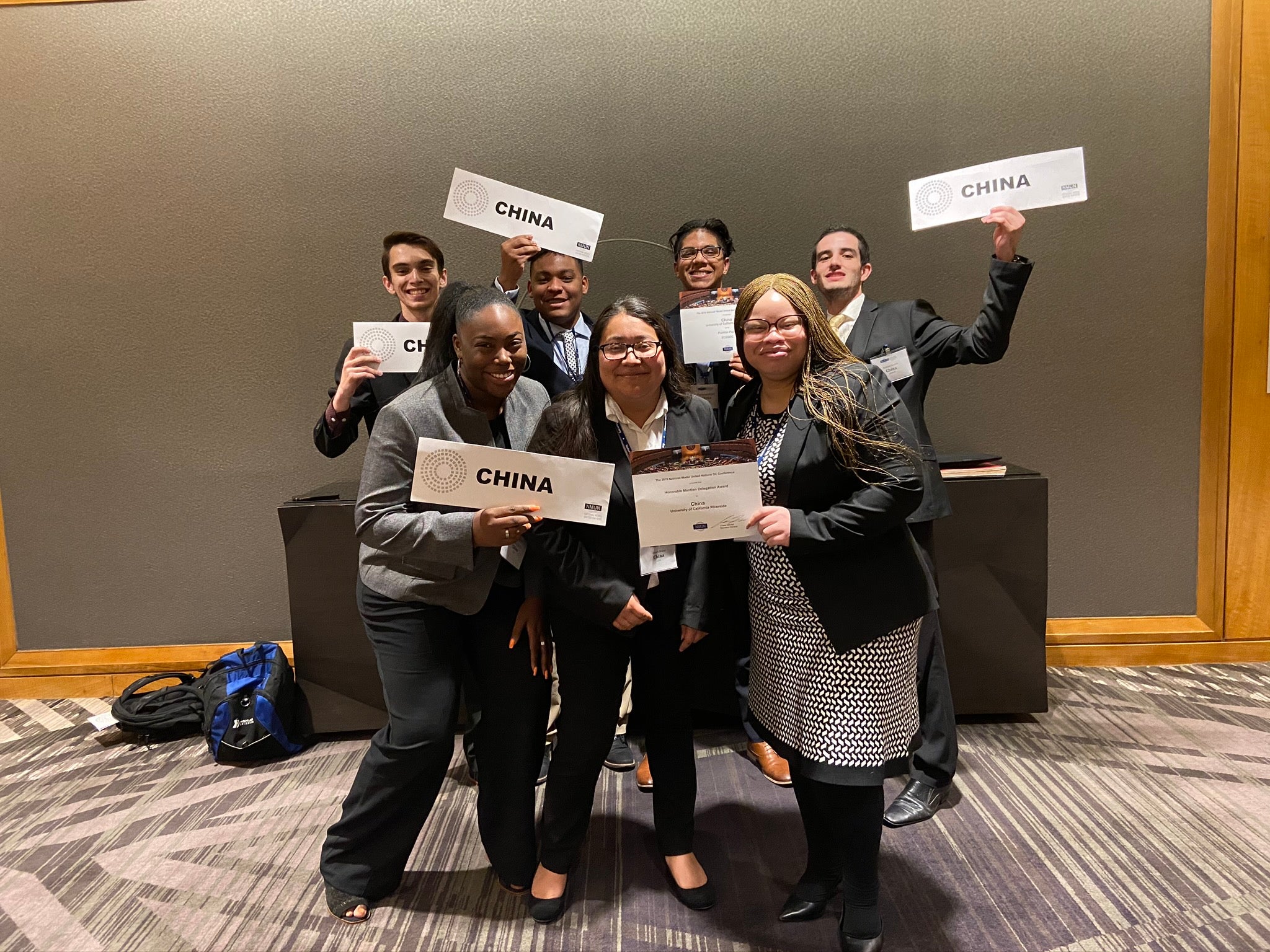 Certain conferences are close to home, but the club has also had the opportunity to travel the world to attend conferences overseas. In November 2019, the organization traveled to Germany and Washington, D.C., for conferences hosted by the National Model United Nations organization. While in DC, UCR’s Model UN competed against about 100 schools and received the Position Paper Award, an award granted to the school with the best “position paper” which serves as a written opening argument of intent. The club was also awarded Honorable Mention as a full delegation, the equivalent of third-place overall.