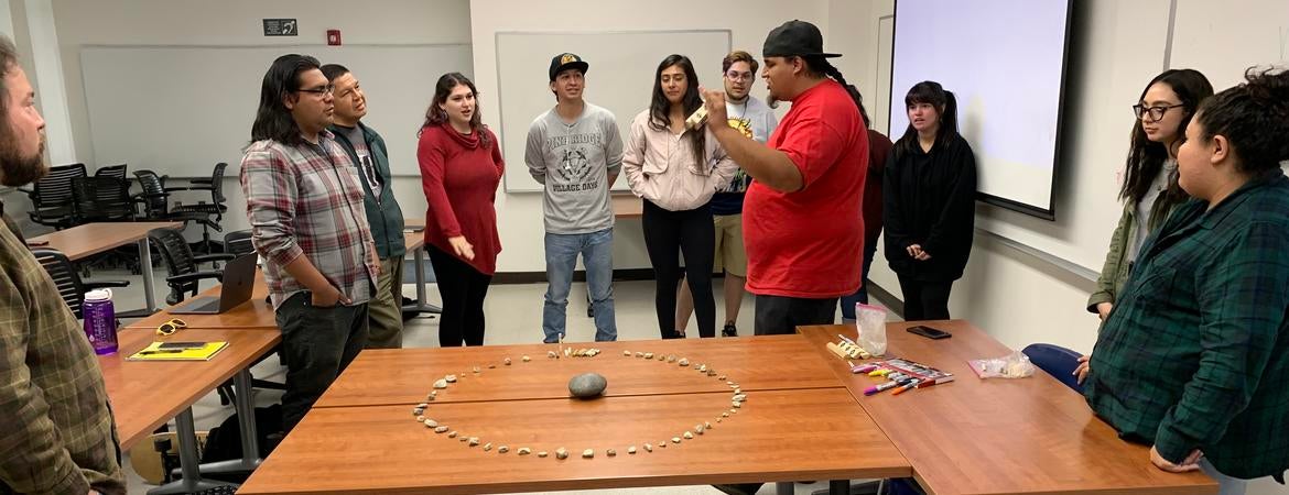 “This class is one of the keys to the success of Native students in the UCs,” said William Madrigal, Jr., a graduate student in the Department of Ethnic Studies. He is of Cahuilla and Luiseño descent and grew up on Cahuilla Reservation in a culturally involved household. As a child, Madrigal learned Mountain Cahuilla and he and his father traveled to different reservations teaching the Cahuilla language to tribal community members.