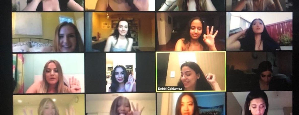 FEATURED PHOTO. Kappa Kappa Gamma sorority play a "get-to-know-me-better" game during a virtual Zoom event in an effort to keep members connected.