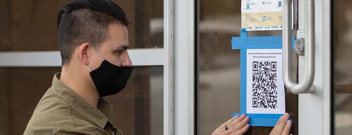 Each lab and studio has a QR code at the entrance that grad students can scan with a smartphone to notify lab supervisors of their check-in.