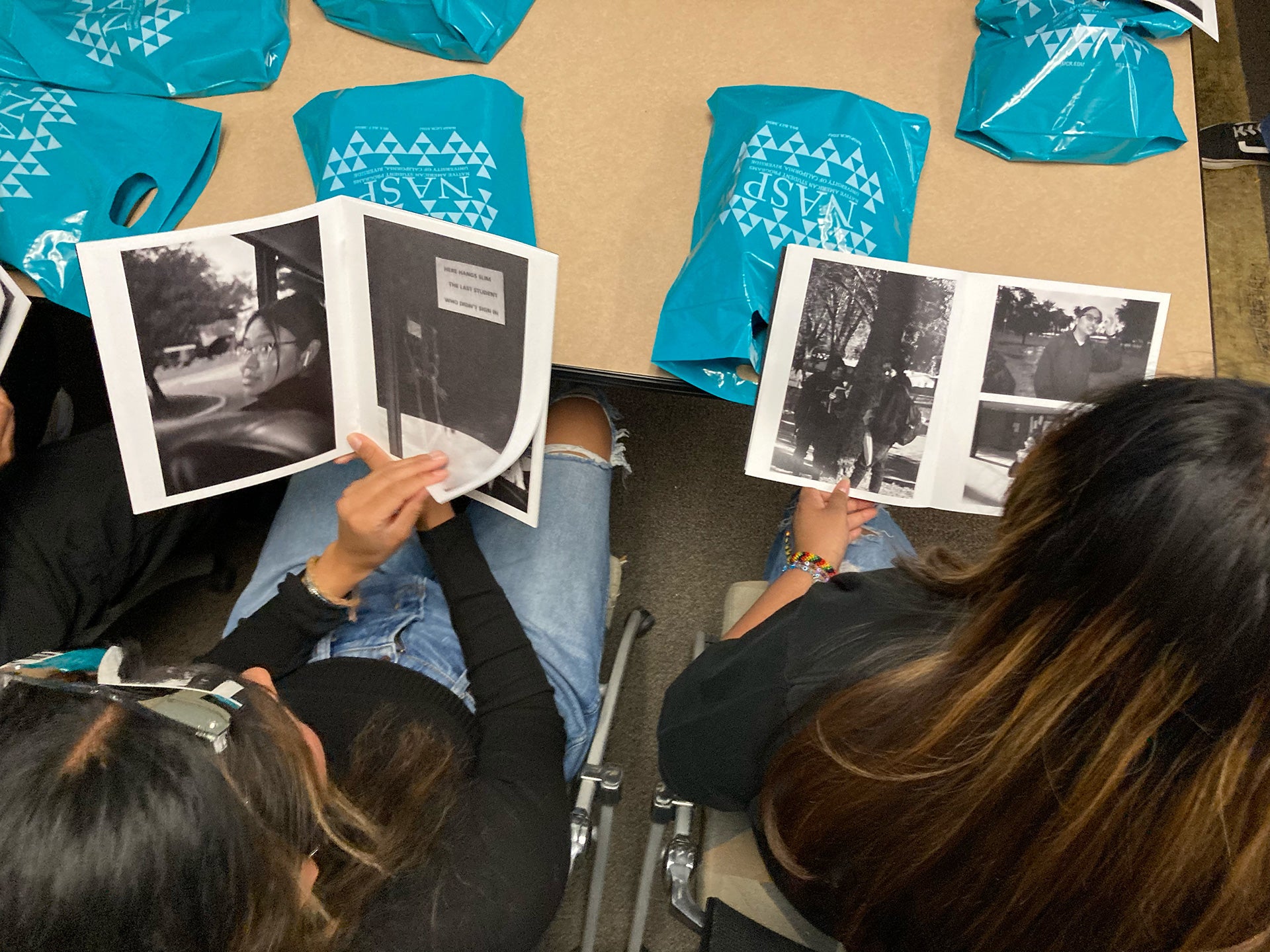 During a visit to UCR on April 21, the Sherman Indian students unboxed “TRBL,” the finished photography book that they collaborated on with Valiente. During the field trip, the students toured UCR art studio and the Department of Art, and were invited for lunch hosted by Native American Student Programs.
