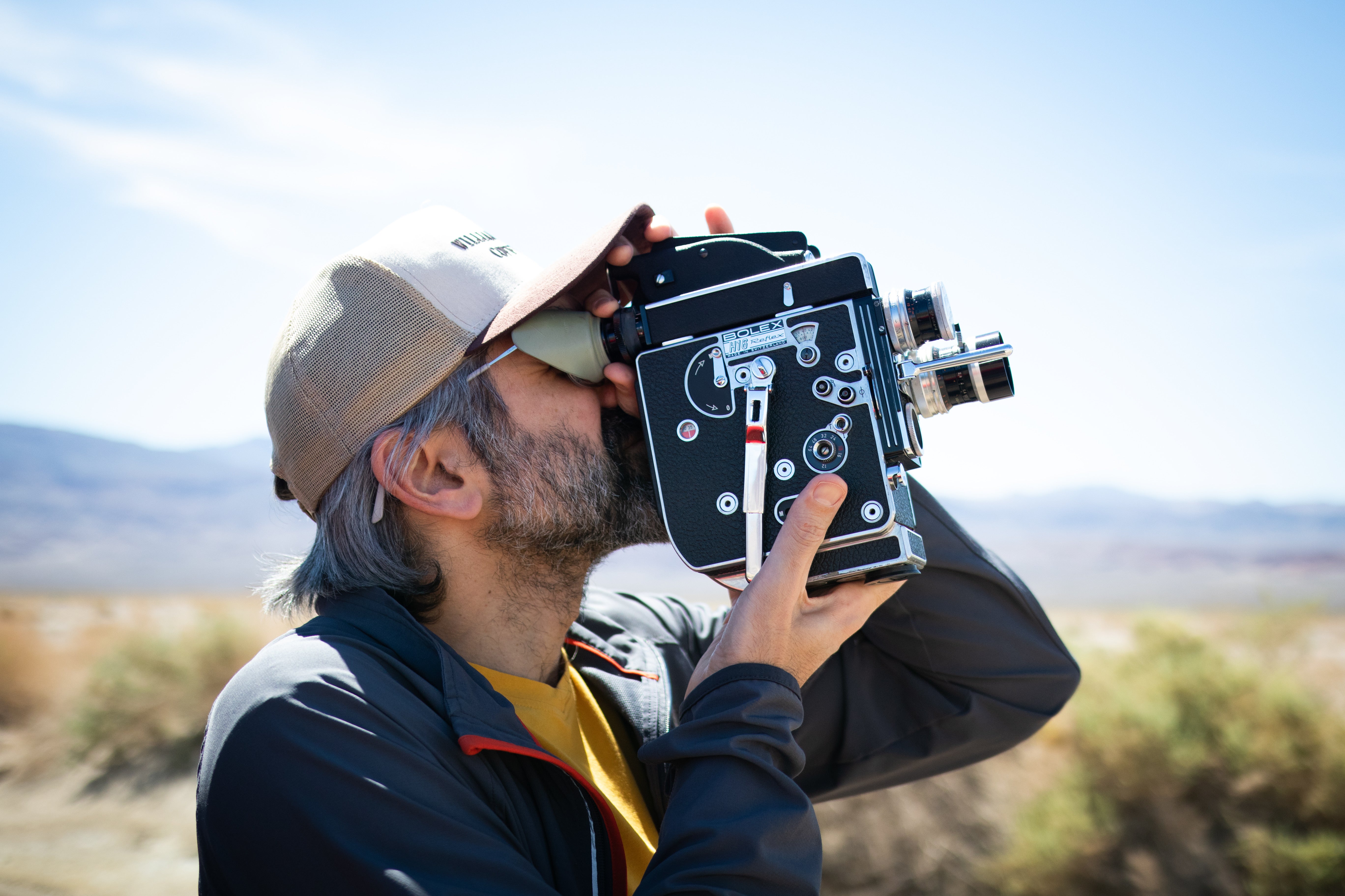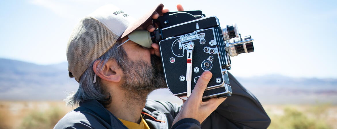 FEATURED PHOTO. Professor Christophe Katrib shoots with his Bolex film camera. Photo by Nathan Baglyos.