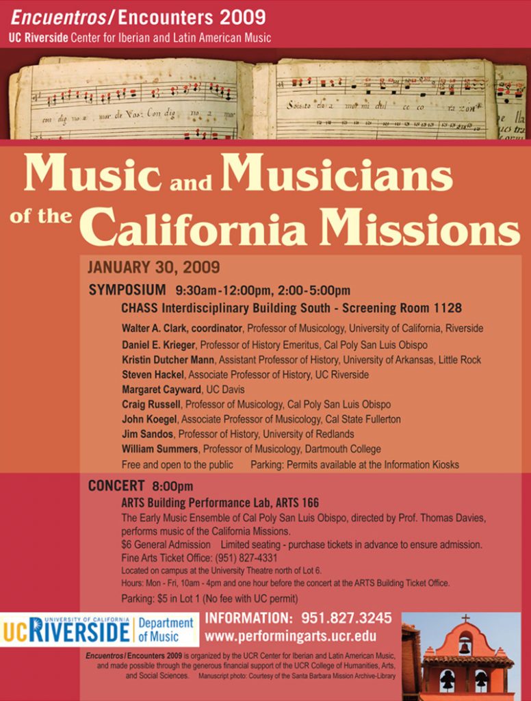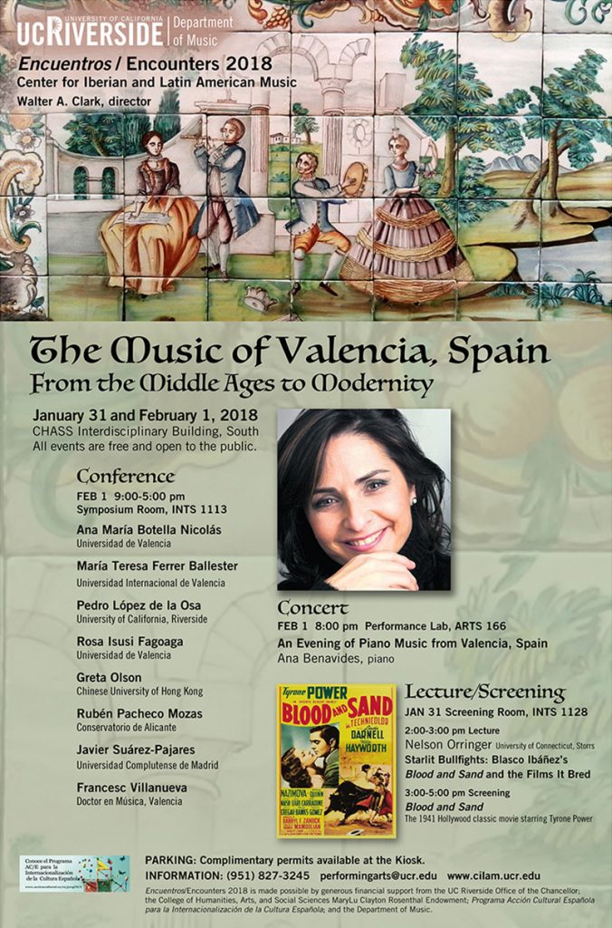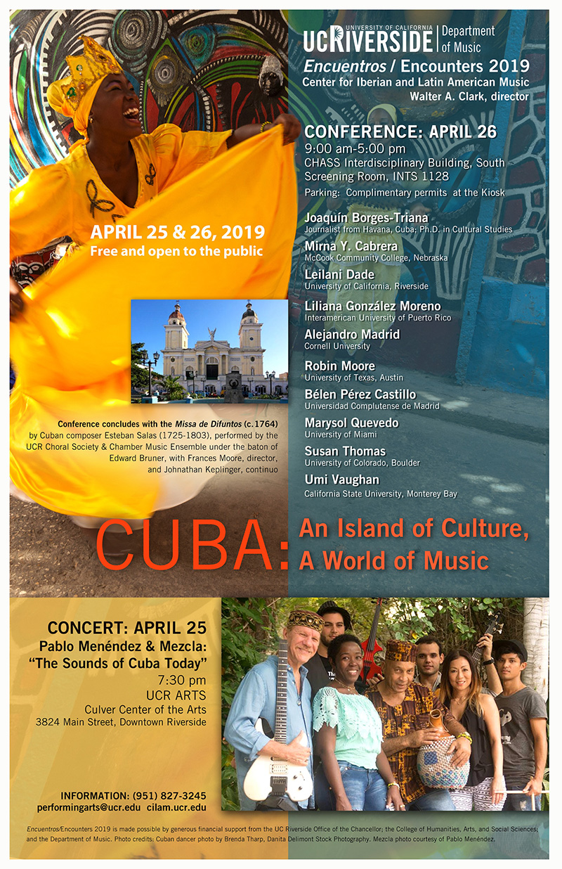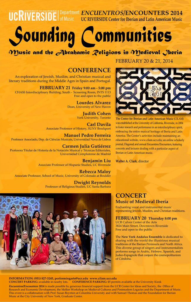 Encuentros/Encounters is an annual celebration of the Iberian and Latin American musical heritage through the presentation of original research and high-quality performance in a particular area of interest. Begun in 2005, these events have brought to UCR leading scholars and performers in a wide variety of areas: