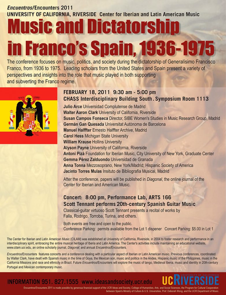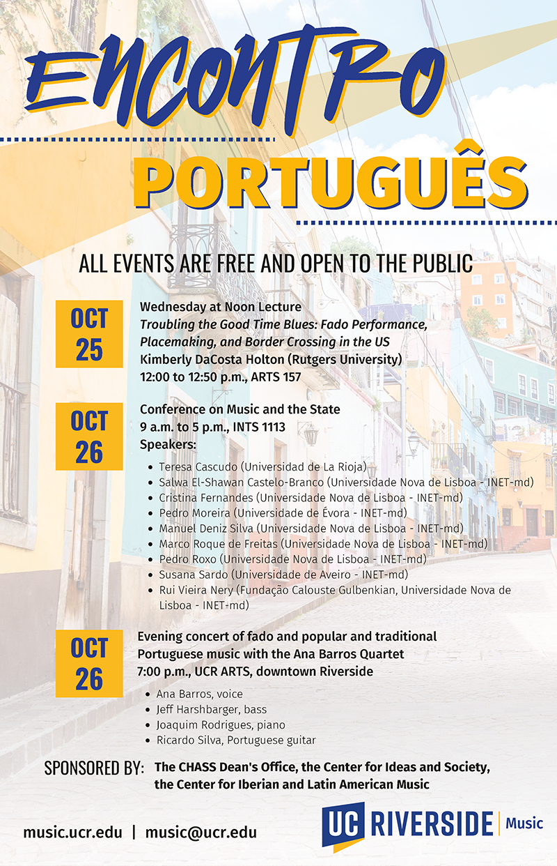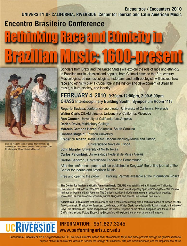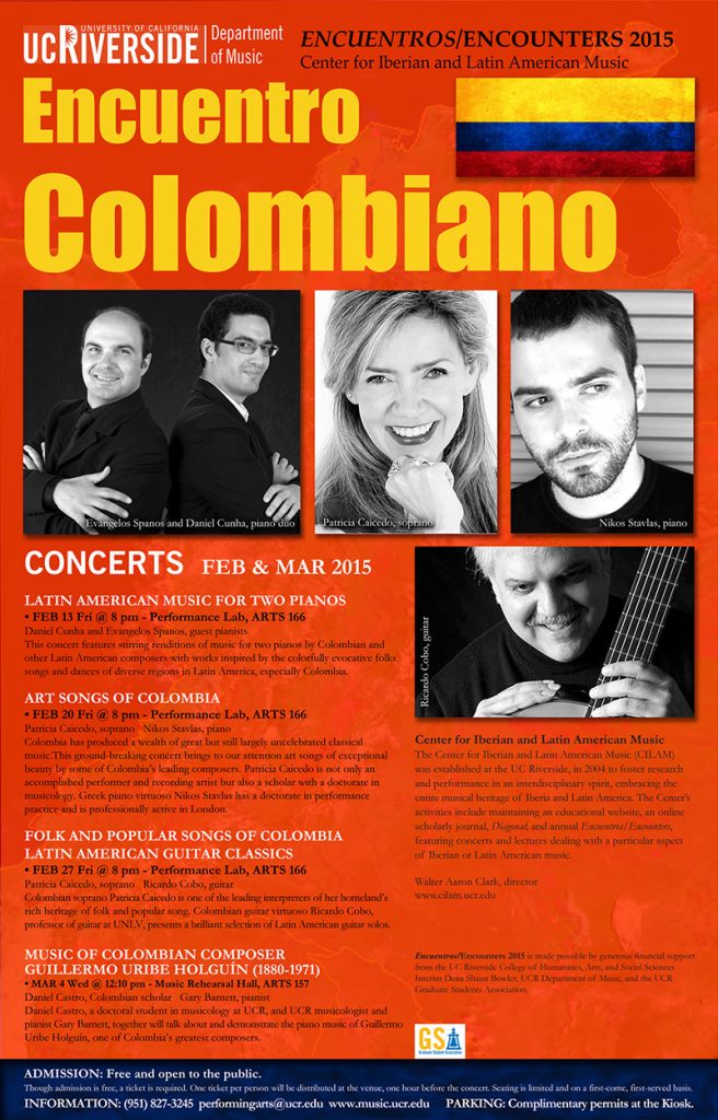 Encuentros/Encounters is an annual celebration of the Iberian and Latin American musical heritage through the presentation of original research and high-quality performance in a particular area of interest. Begun in 2005, these events have brought to UCR leading scholars and performers in a wide variety of areas: