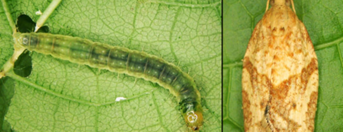 Damage: LBAM has been recorded from over 2,000 different types of plants, encompassing 50 plant families. Host plants include deciduous tree fruits, subtropical fruits, berry fruits, ornamentals, and forest and shade trees. LBAM larvae feed on leaves and buds reducing photosynthetic rate, deforming growth patterns, which leads to general plant weakness and disfigurement. In grapes, apples, kiwifruit, plums, avocados, and citrus, LBAM larvae can feed directly on the fruit, and resulting feeding damage renders fruit unmarketable. Because of the economically important effects of larval feeding, LBAM has a high pest status in New Zealand and Australia because of zero tolerance requirements for presence in produce destined for the export markets.