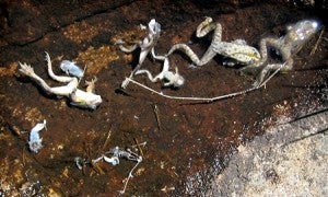 The Situation: Upwards of 40% of amphibian species are in decline worldwide, owing to several factors such as habitat loss, environmental degradation, pollutants, and disease. Recently the fungal pathogen Batrachochytrium dendrobatidis has emerged as a major threat to amphibians. Amphibians infected with B. dendrobatidis develop chytridiomycosis, which eventually causes death in susceptible species. The first documented outbreaks of chytrid fungus occurred in the late 1990s simultaneously in Australia and Central America. Since then the pathogen has been detected in over 100 amphibian species and has been associated with severe population declines or extinctions in several regions throughout the world. A great deal is still unknown about the biology of this pathogen, therefore it remains an active area of research for disease ecologists and conservation biologists.