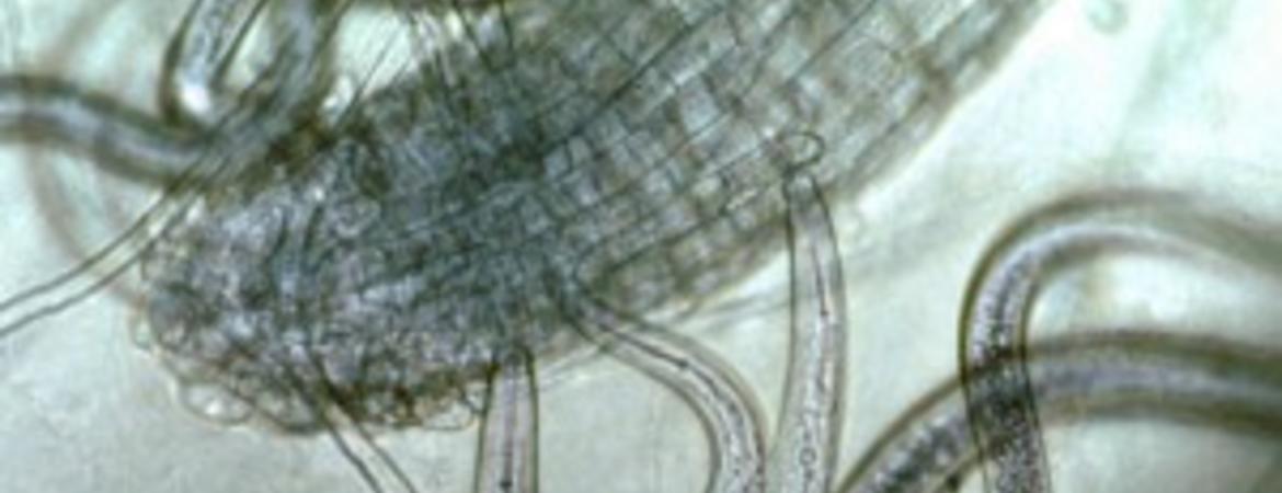 Damage: Like all plant parasitic nematodes, B. longicaudatus feeds by puncturing plant cells with a mouth stylet and withdrawing cell contents. It does not enter the roots but attacks from the outside, mainly near the root tip. Its long mouth stylet can damage the meristematic cells leading to stunting of the roots. Feeding wounds are often points of entry for disease-causing microorganisms which otherwise would not be able to enter healthy plant tissues. These secondary infections increase the stress on the plants and can accelerate cell and root death. Above-ground disease symptoms are non-specific. They typically resemble symptoms associated with plant drought stress and nutritional deficit such as stunted growth and leaf chlorosis followed by necrosis and death.