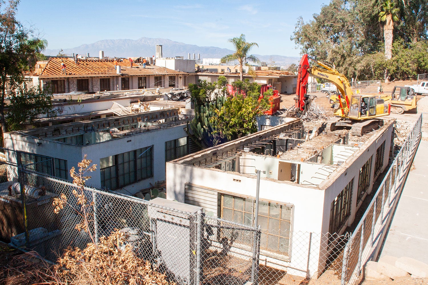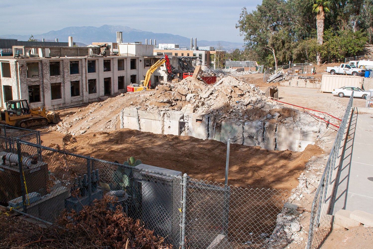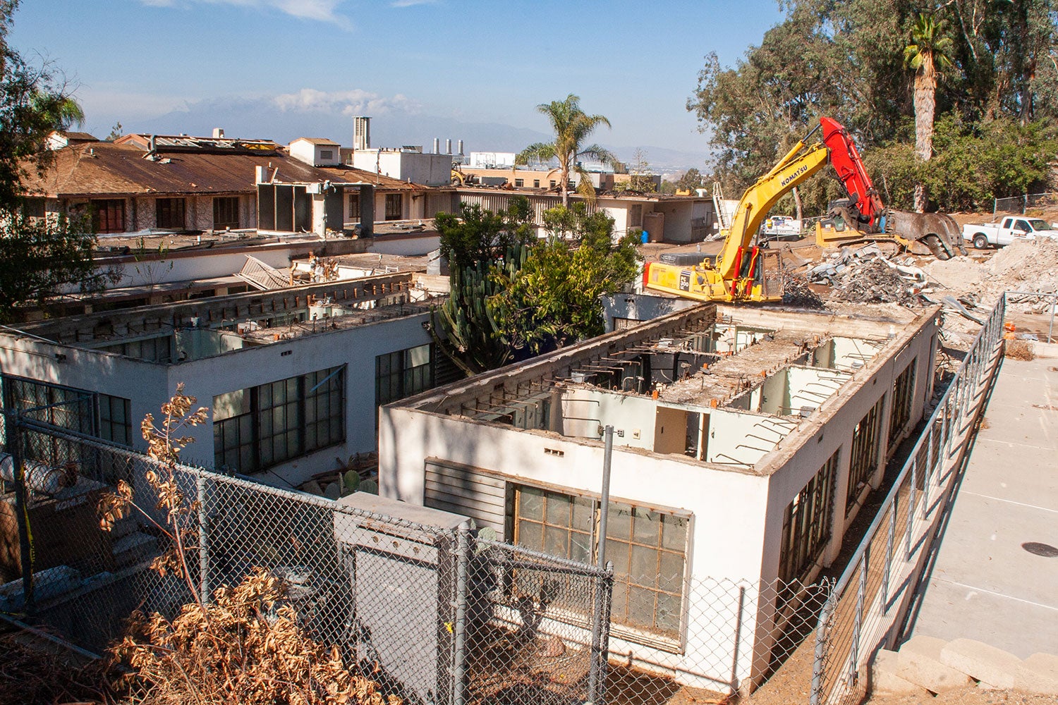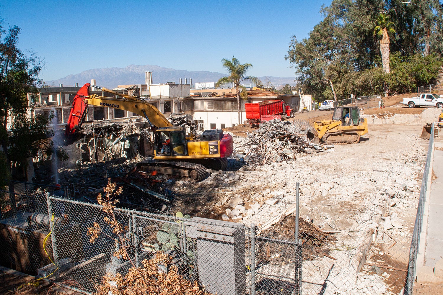 Demolition of the old UCR Entomology and Insectary and Quarantine Facility Buildings. Demolition started in December 2008 and continued through January 2009.