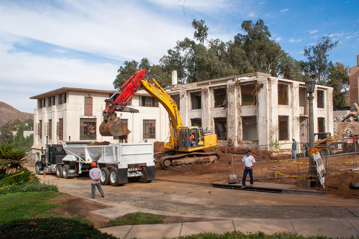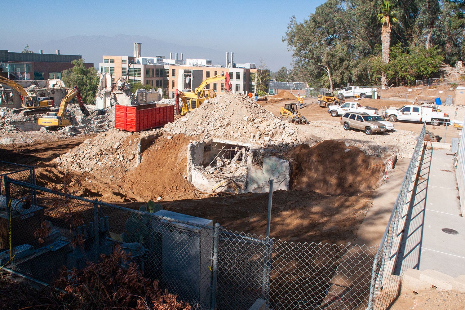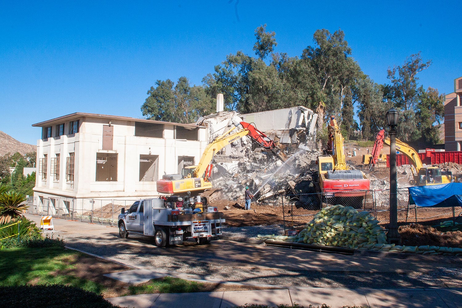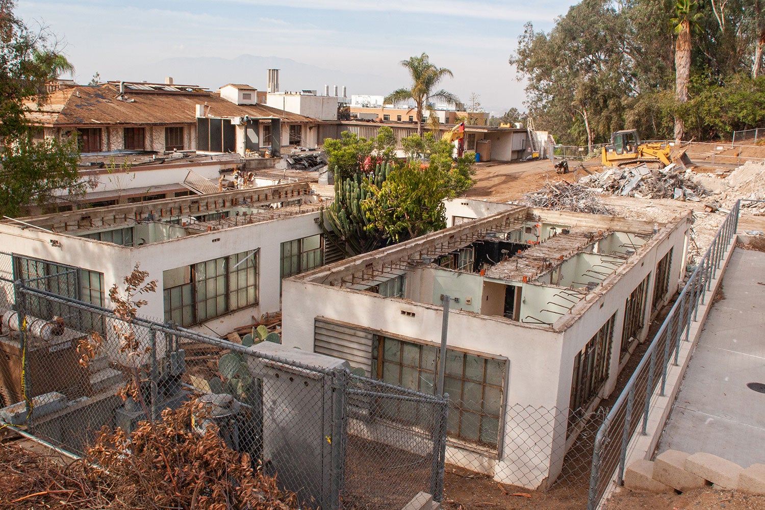 Demolition of the old UCR Entomology and Insectary and Quarantine Facility Buildings. Demolition started in December 2008 and continued through January 2009.