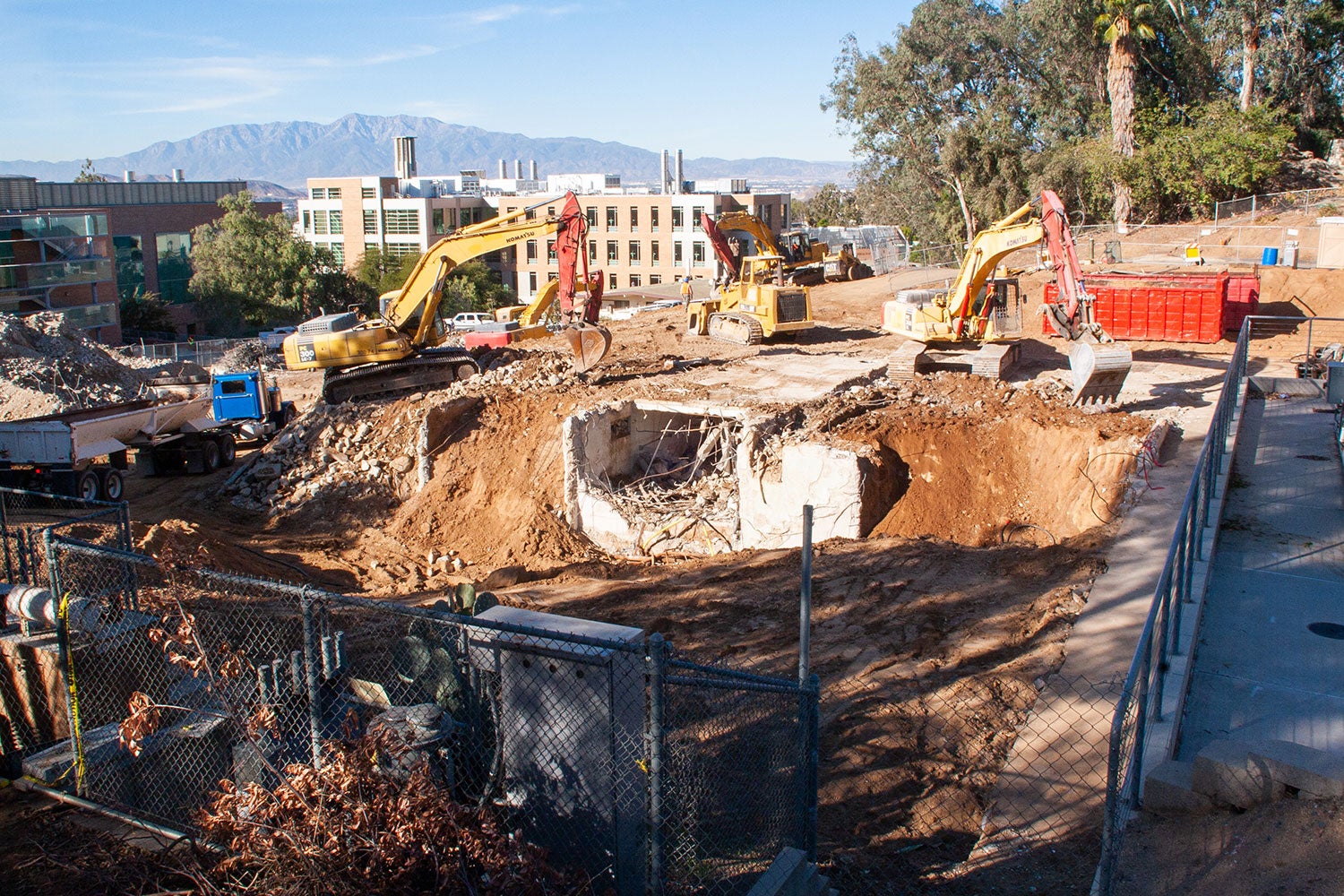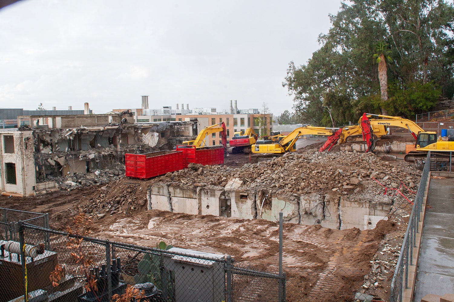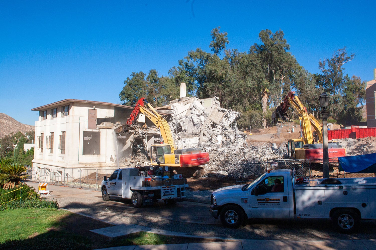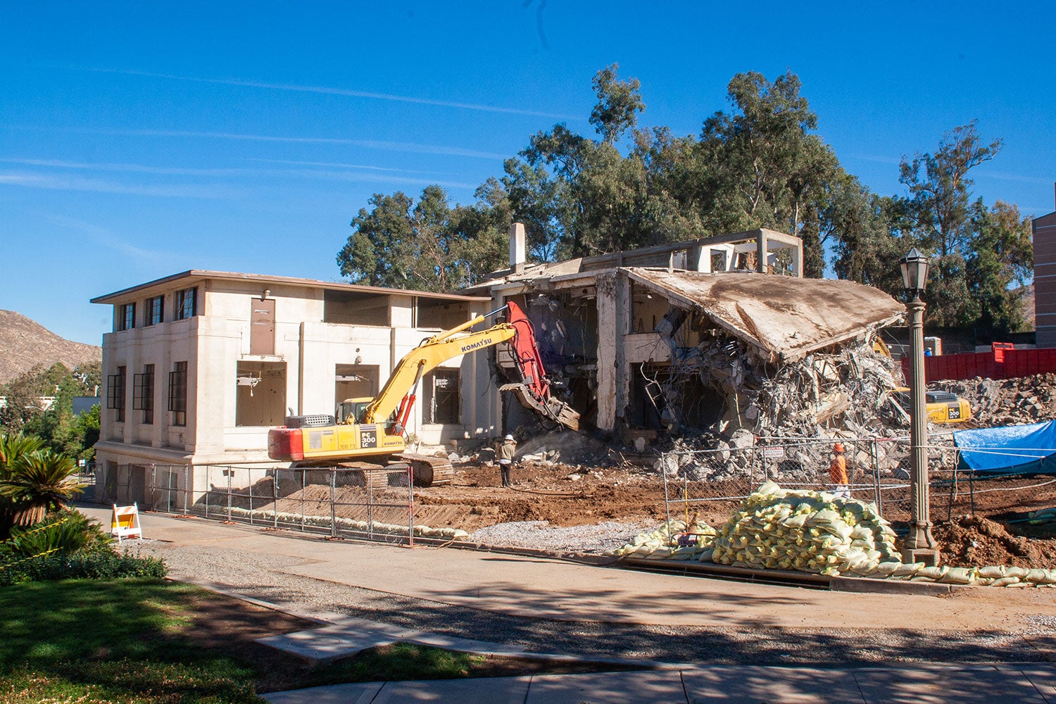 Demolition of the old UCR Entomology and Insectary and Quarantine Facility Buildings. Demolition started in December 2008 and continued through January 2009.