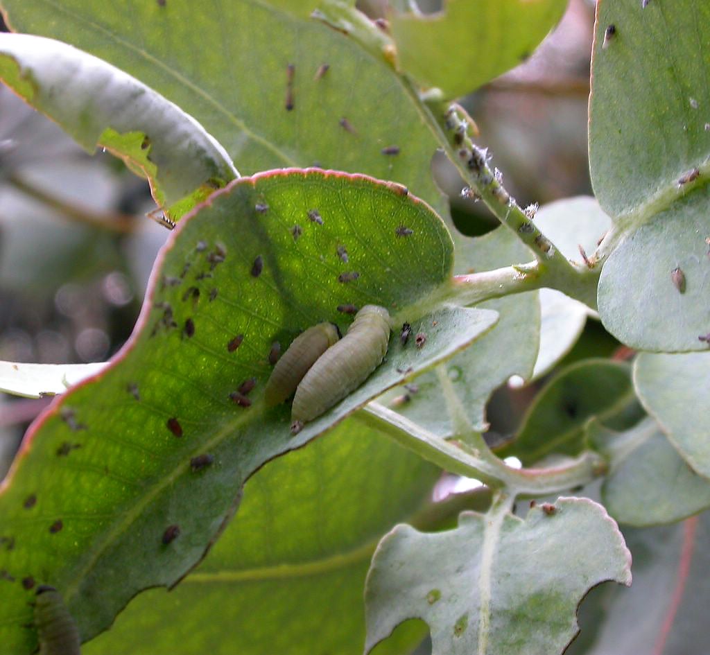 The Situation: A large number of introduced Eucalyptus pests have invaded California over the last ten years, including boring beetles, psyllids, gall forming wasps, and leaf chewing beetles in the family Chrysomelidae. The blue gum psyllid was the first to become a pest of ornamental eucalyptus, silver-leaved mountain gum or baby blue gum, and Eucalyptus pulverulenta Sims. The blue gum psyllid was not a pest for long, however, due to the introduction of Australian parasitoids.