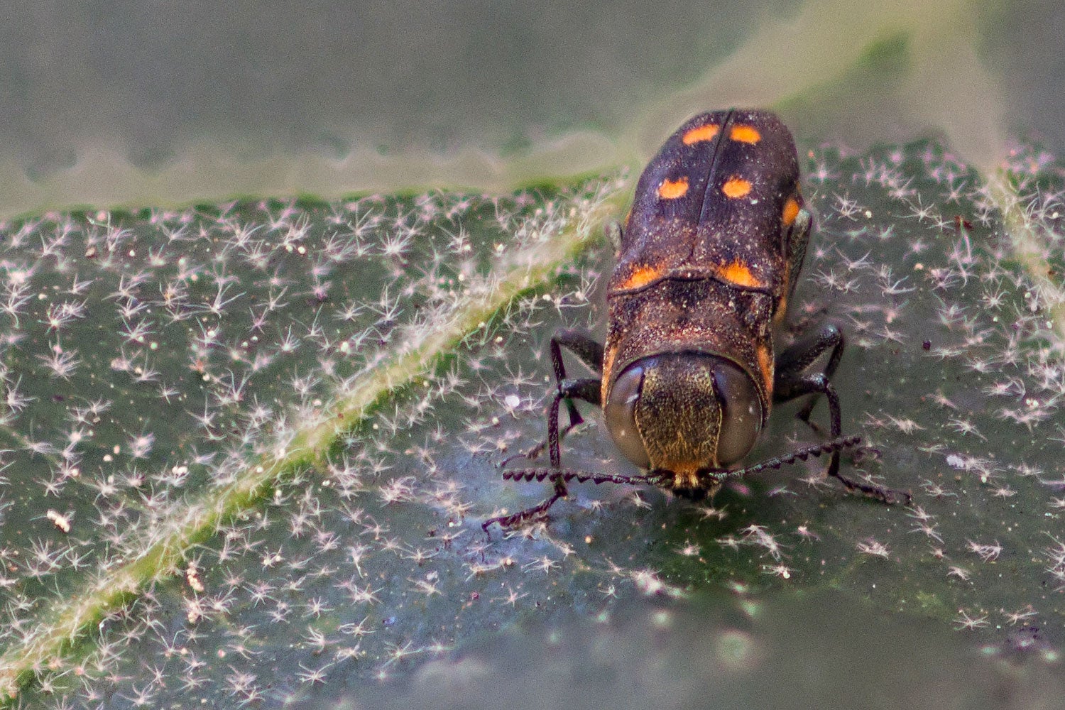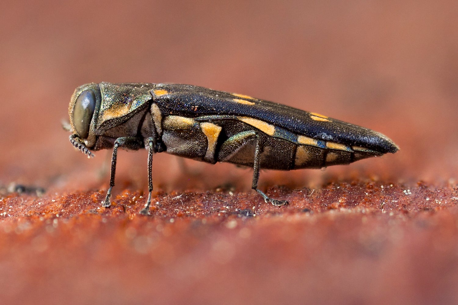 The Goldspotted Oak Borer (GSOB) is a buprestid beetle which is native to oak forests of Southeastern Arizona, and a closely related species (Agrilus coxalis), almost identical in appearance, is found in Central Mexico, and Northern Guatemala. Since 2002, GSOB has contributed to the mortality of more than 80,000 trees over approximately 4,900 km2, and this infested area continues to increase as the GSOB population grows and spreads. In its native range, GSOB is not a pest. This may be due to efficient population control by natural enemies and natural levels of resistance by oak species that have co-evolved with GSOB.