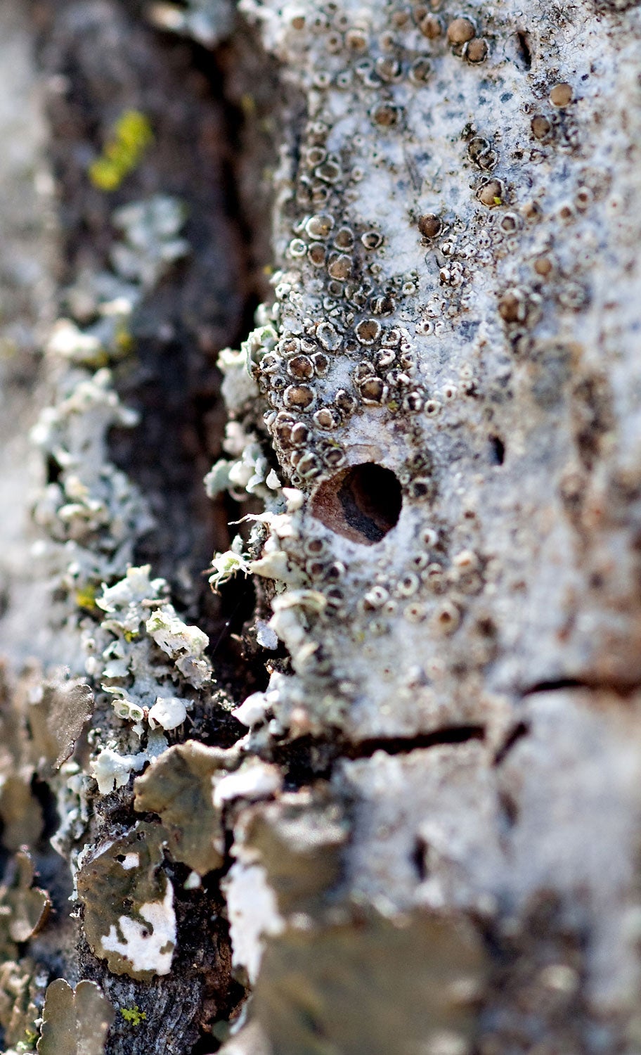GSOB exit holes are typically D-shaped and are about 3mm in width (Fig. 10). These emergence holes are chewed by adult GSOB that are exiting pupal chambers just beneath the surface of the bark. The presence of adult exit holes indicates GSOB activity has occurred in that particular area of the tree.
